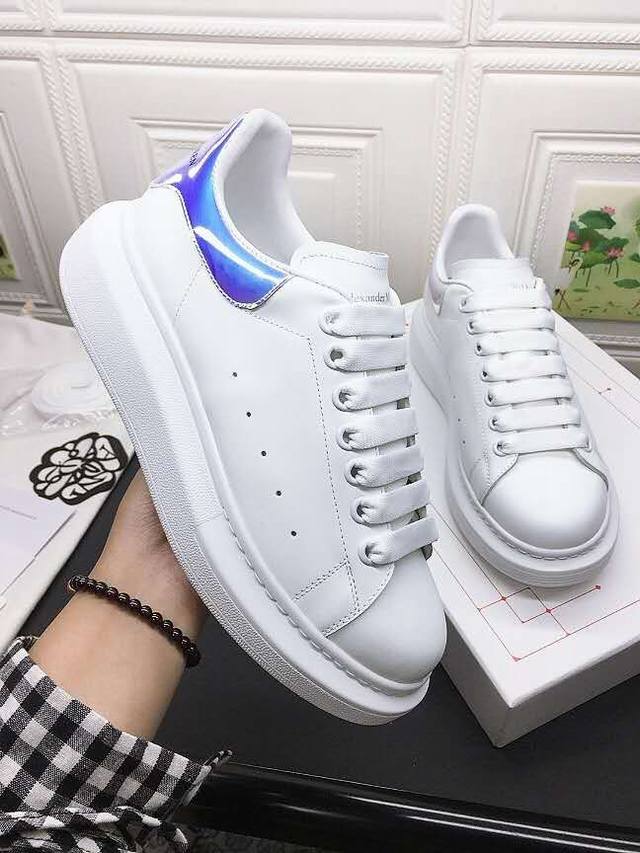Alexander Mcqueen 麦昆 情侣款 年新款配色,官网同步发售!想不出有任何理由不收它!面料采用进口丝绸亚光原版牛皮 最新材料 水染羊皮内里,羊皮垫