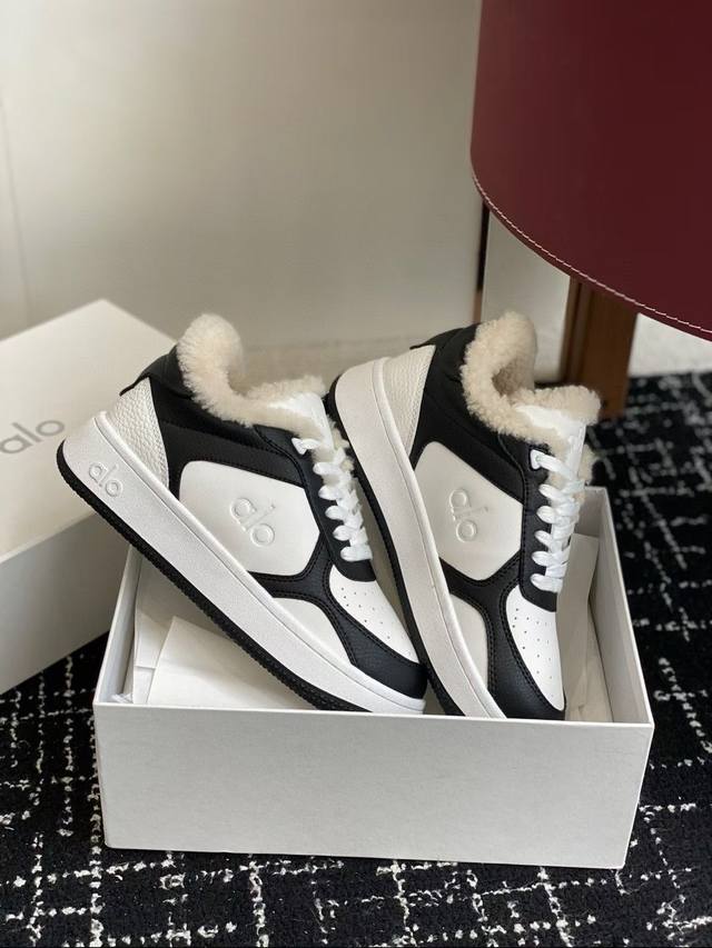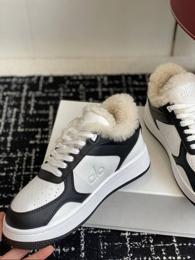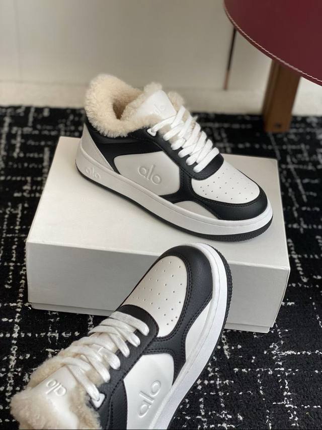 Alo 秋冬新款|拼色休闲小白鞋 今年很火的,穿上Ta就是精神的小姐姐♀ 上脚超级好看 皮毛一体妥妥的保暖神器呀! 鞋面牛皮材质 羊毛内里 鞋底:原版橡胶大底