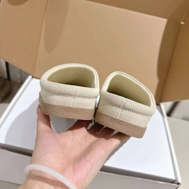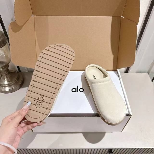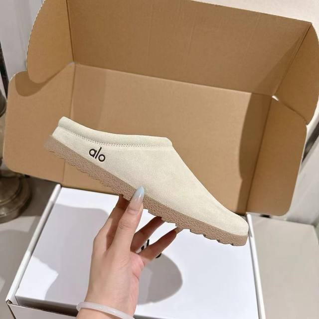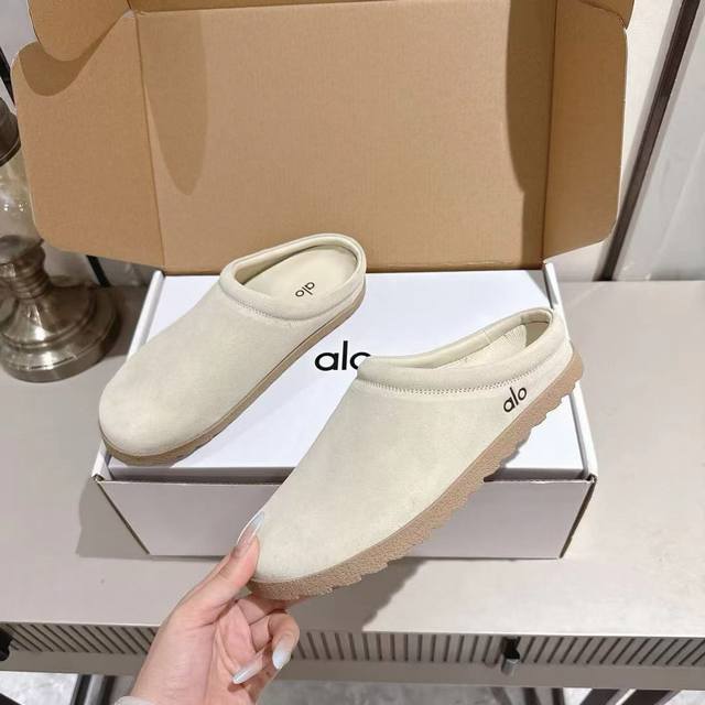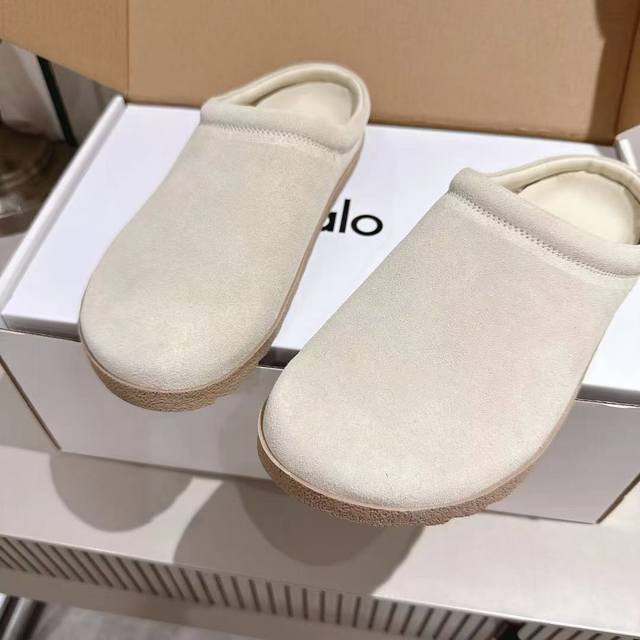 Alo25Ss 新品休闲单鞋 简约即王道 散发随性慵懒感 一脚蹬设计 轻松又自在 时髦精出街 宅家都可 拿捏松弛氛围感 为日常注入随性与格调 鞋面选用质感上乘的麂皮材质,触感细腻又自带复古腔调。鞋口处包裹着蓬松柔软的毛绒,不仅看着温暖治愈,贴合脚部时更是能带来云朵般的舒适包裹感。整体外观简约大方,没有多余的繁杂设计,不管是居家穿着享受慵懒时光,还是搭配休闲服饰出街,都能轻松适配,为你打造出随性又有格调的穿搭风格。 材质:麂皮 内里:羊皮 毛里 大底:橡胶 Size:35-40