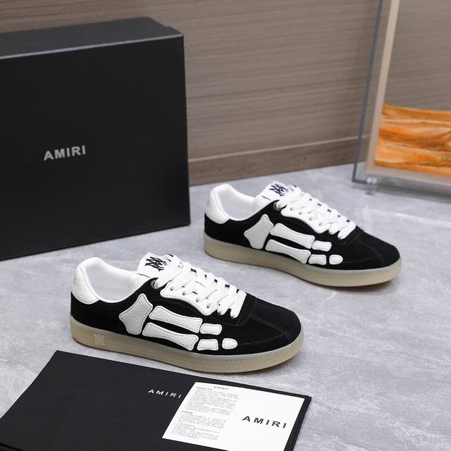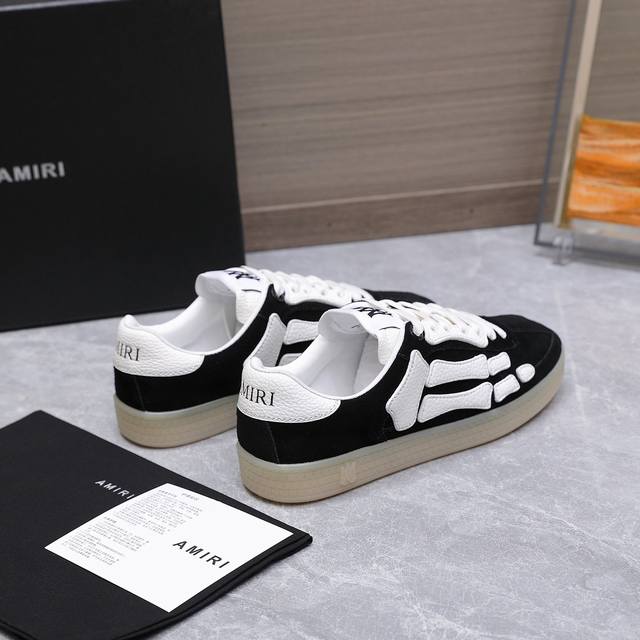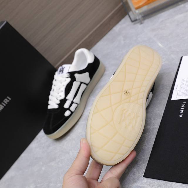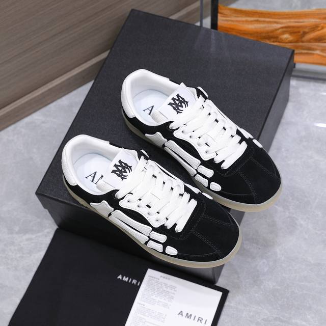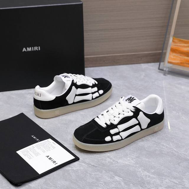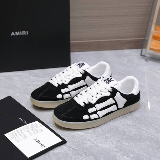 Amiri埃米尔 25 春季新款 骨头鞋 情侣款 休闲 运动鞋 板鞋 DDD Amiri的品牌字母和 Ma标识出现在鞋身侧面 DDD 感受一下高阶Chill感!整体简洁干净又有识别度!兼具奢华与街头感~两个配色都是百搭不出错的那种 DDD 翻毛皮质感也好好哦! DDD 面料: 进口牛皮 牛反绒 DDD 内里: 原版定制透气里 DDD 大底: 独家开模发泡组合Tpu材质 DDD Size:#女款35-40 #男款39-45 女40 男45订做不退换 DDD 价格p: DDD