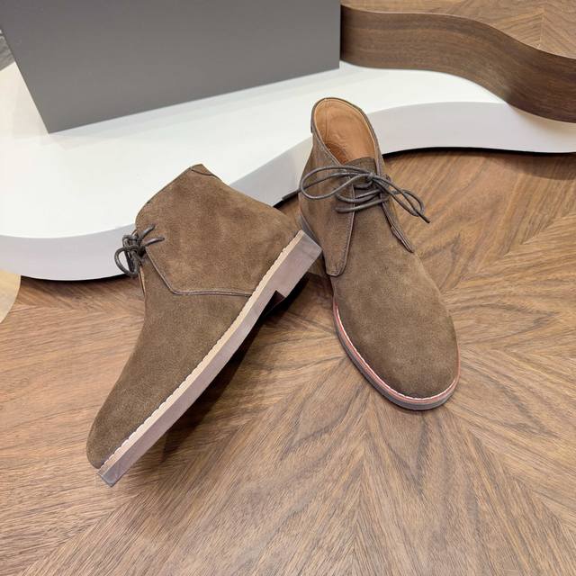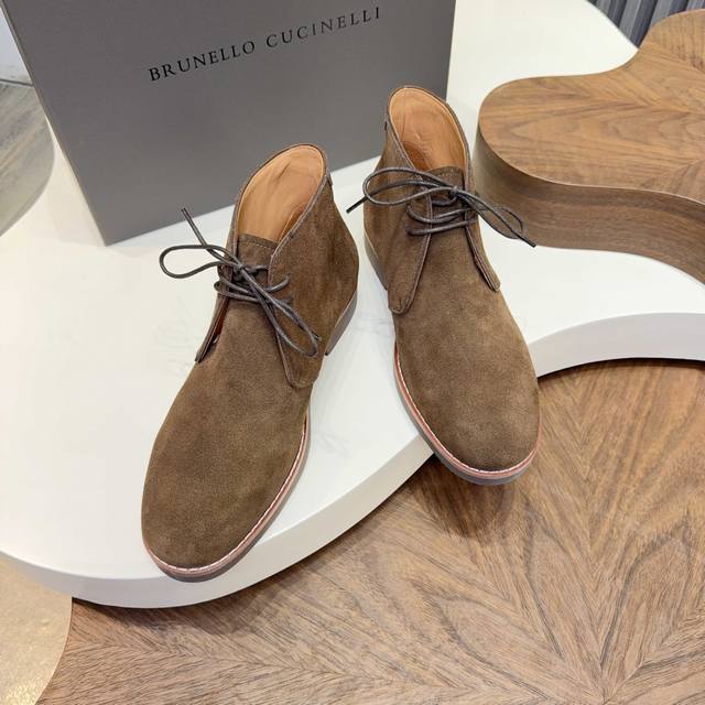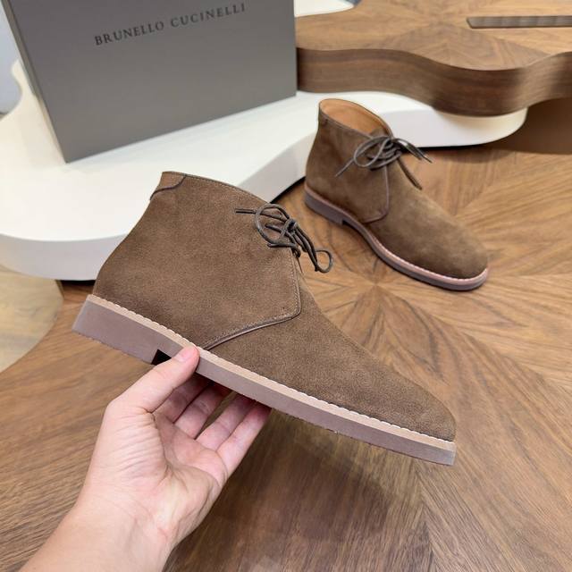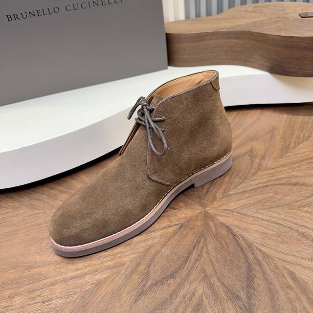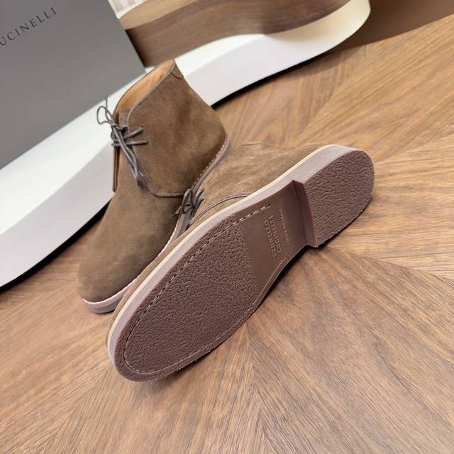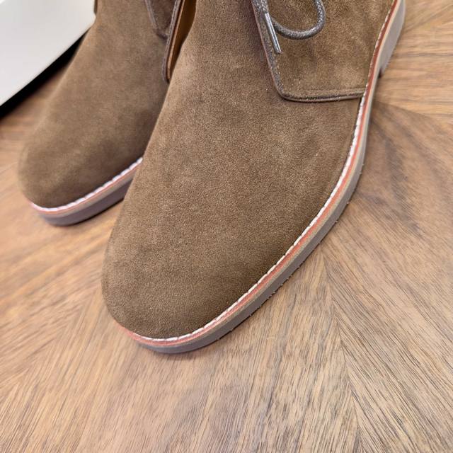 Bc 顶级 Size :39-44 38.45可订做 2025Brunello Cucinelli 反绒皮切尔西靴选用高品质头层胎牛绒,柔软细腻,质感满分。经典侧边松紧带设计,穿脱超方便,贴合脚型,舒适又时髦。鞋底是加厚橡胶,防滑耐磨,秋冬穿完全没压力。暖棕色低调百搭,牛仔裤、西裤都能轻松驾驭,商务休闲都Ok!固特异工艺加持,耐用又有质感,是衣橱必备经典单品,怎么搭都不出错~