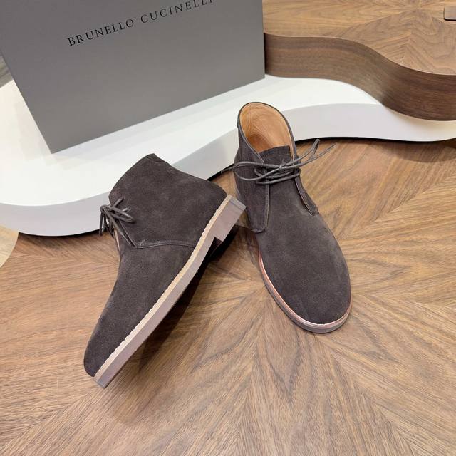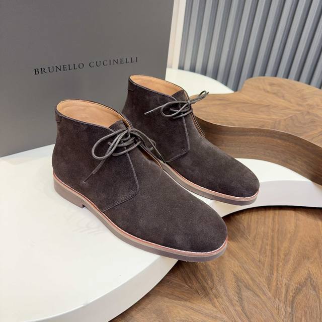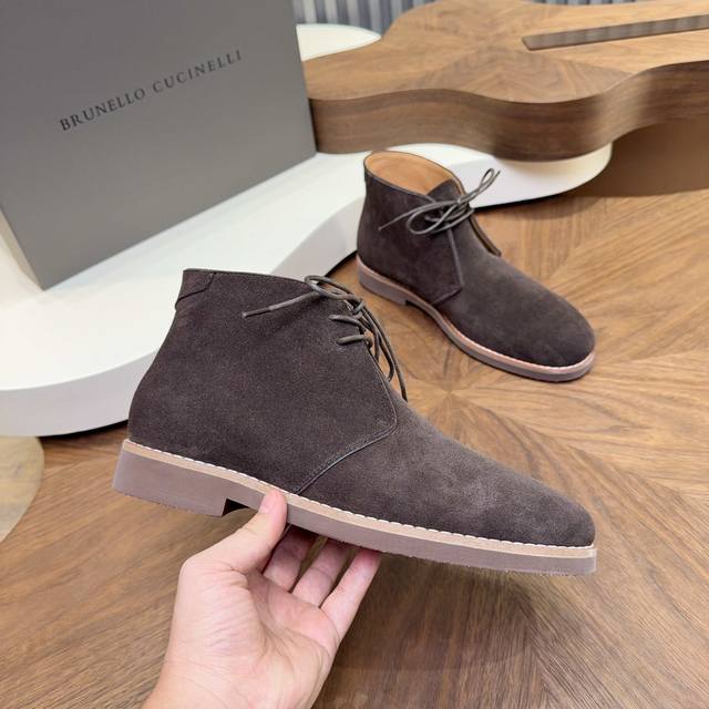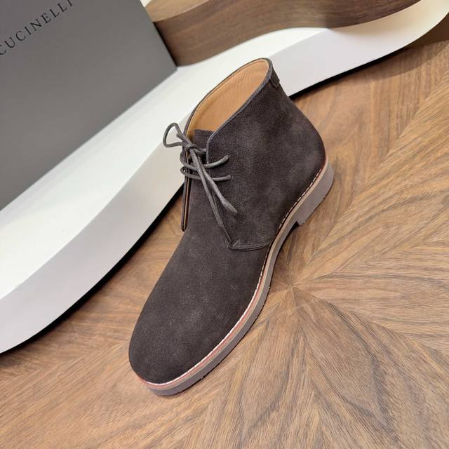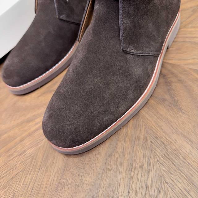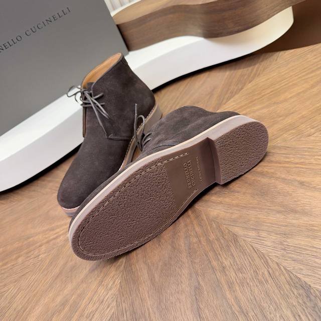 Bc 顶级 Size :39-44 38.45可订做 2025Brunello Cucinelli 反绒皮切尔西靴选用高品质头层胎牛绒,柔软细腻,质感满分。经典侧边松紧带设计,穿脱超方便,贴合脚型,舒适又时髦。鞋底是加厚橡胶,防滑耐磨,秋冬穿完全没压力。暖棕色低调百搭,牛仔裤、西裤都能轻松驾驭,商务休闲都Ok!固特异工艺加持,耐用又有质感,是衣橱必备经典单品,怎么搭都不出错~