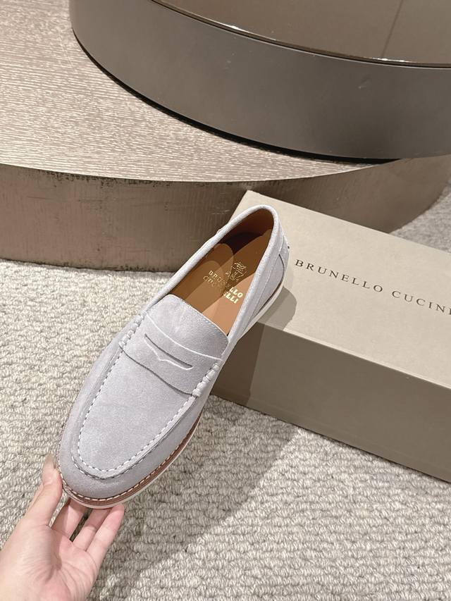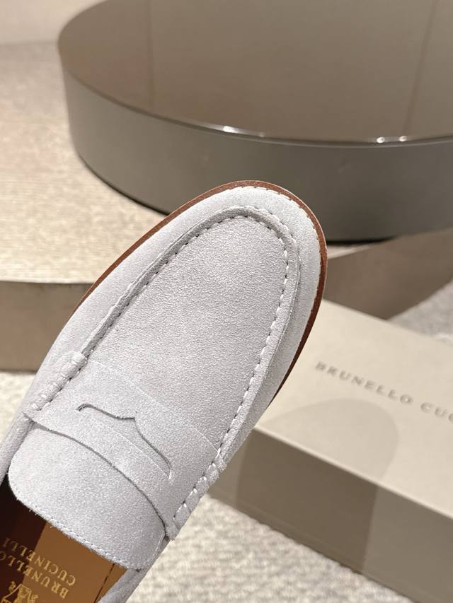 Bc Size :39-44 38.45.46.47可订做 2025Brunello Cucinelli 25Ss 春夏新款 乐福鞋 单鞋 Bc是意大利知名品牌,极简主义风格,纯手工串联珠链配饰!复古又高级!简约又大气,属于非常耐看的款式! 高级百搭之王,完全没有抵抗力!脚感很好很舒服!看起来平平无奇,穿起来又瘦又帅! 不局限任何场合,日常工作、时尚又干练!不管搭配 裙装、裤装、风衣大衣、都非常百搭!超级耐看!一年四季春夏秋冬皆适宜。 面料:原版进口牛反绒 内里:牛皮里 大底:原版开模大底。
