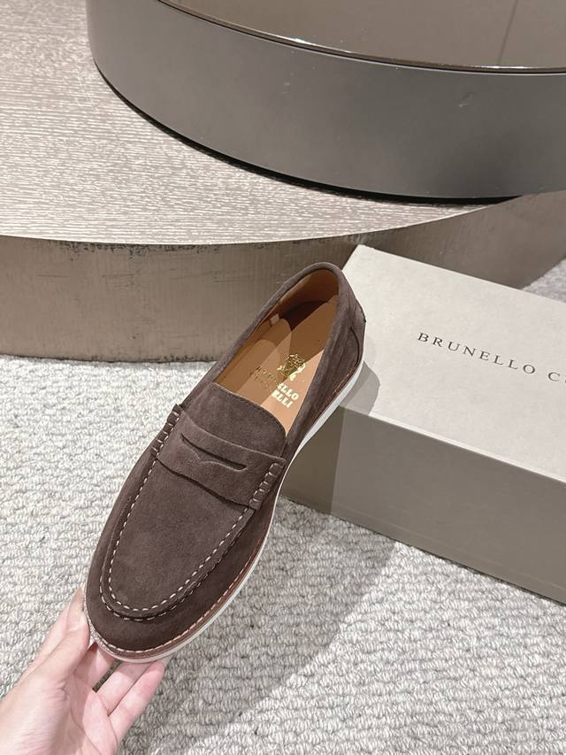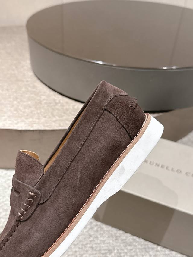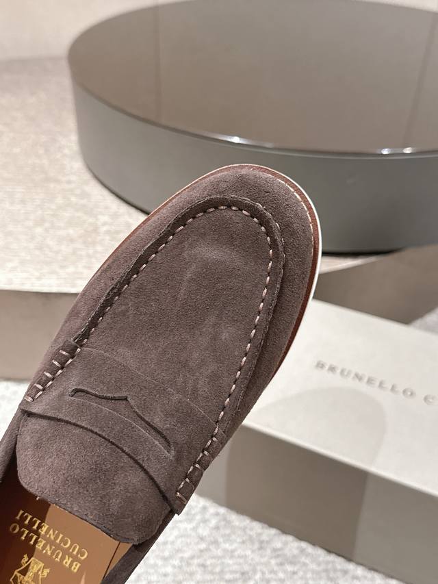 Bc Size :39-44 38.45.46.47可订做 2025Brunello Cucinelli 25Ss 春夏新款 乐福鞋 单鞋 Bc是意大利知名品牌,极简主义风格,纯手工串联珠链配饰!复古又高级!简约又大气,属于非常耐看的款式! 高级百搭之王,完全没有抵抗力!脚感很好很舒服!看起来平平无奇,穿起来又瘦又帅! 不局限任何场合,日常工作、时尚又干练!不管搭配 裙装、裤装、风衣大衣、都非常百搭!超级耐看!一年四季春夏秋冬皆适宜。 面料:原版进口牛反绒 内里:牛皮里 大底:原版开模大底。