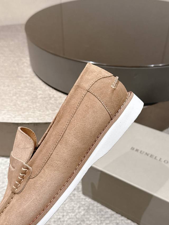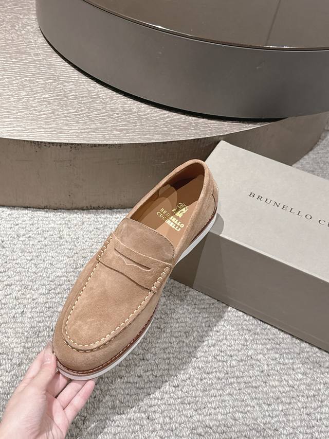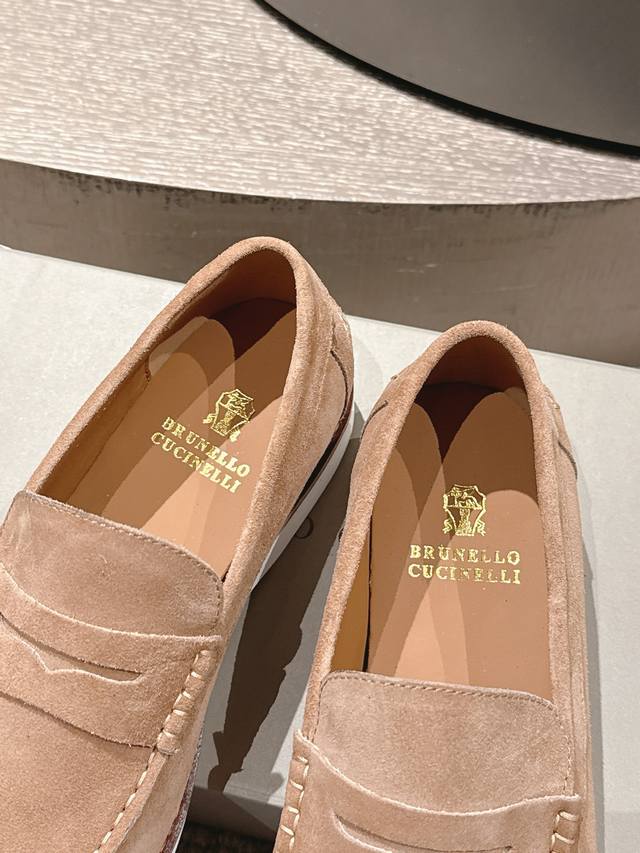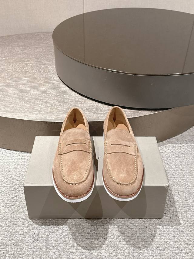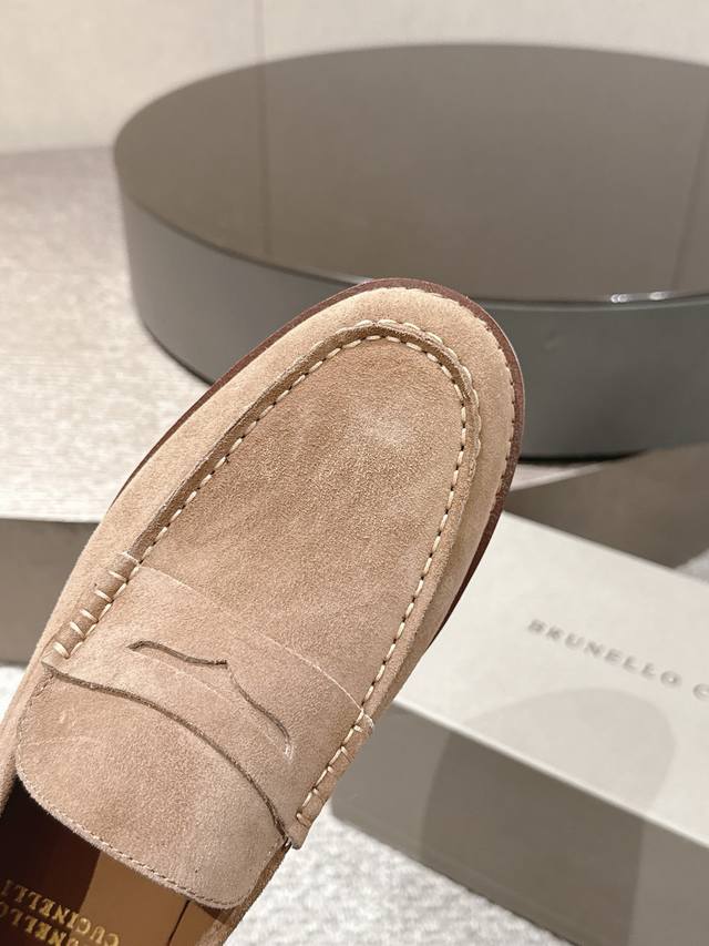 Bc Size :39-44 38.45.46.47可订做 2025Brunello Cucinelli 25Ss 春夏新款 乐福鞋 单鞋 Bc是意大利知名品牌,极简主义风格,纯手工串联珠链配饰!复古又高级!简约又大气,属于非常耐看的款式! 高级百搭之王,完全没有抵抗力!脚感很好很舒服!看起来平平无奇,穿起来又瘦又帅! 不局限任何场合,日常工作、时尚又干练!不管搭配 裙装、裤装、风衣大衣、都非常百搭!超级耐看!一年四季春夏秋冬皆适宜。 面料:原版进口牛反绒 内里:牛皮里 大底:原版开模大底。