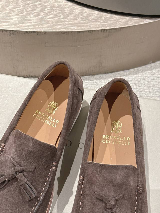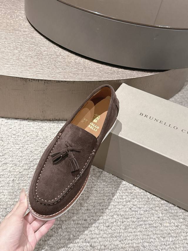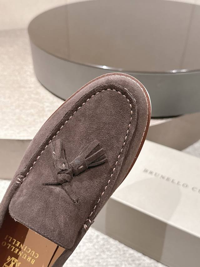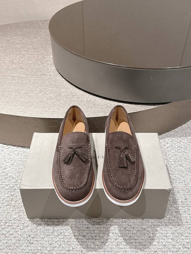 Bc Size :39-44 38.45.46.47可订做 2025Brunello Cucinelli 25Ss 春夏新款 乐福鞋 单鞋 Bc是意大利知名品牌,极简主义风格,纯手工串联珠链配饰!复古又高级!简约又大气,属于非常耐看的款式! 高级百搭之王,完全没有抵抗力!脚感很好很舒服!看起来平平无奇,穿起来又瘦又帅! 不局限任何场合,日常工作、时尚又干练!不管搭配 裙装、裤装、风衣大衣、都非常百搭!超级耐看!一年四季春夏秋冬皆适宜。 面料:原版进口牛反绒 内里:牛皮里 大底:原版开模大底。