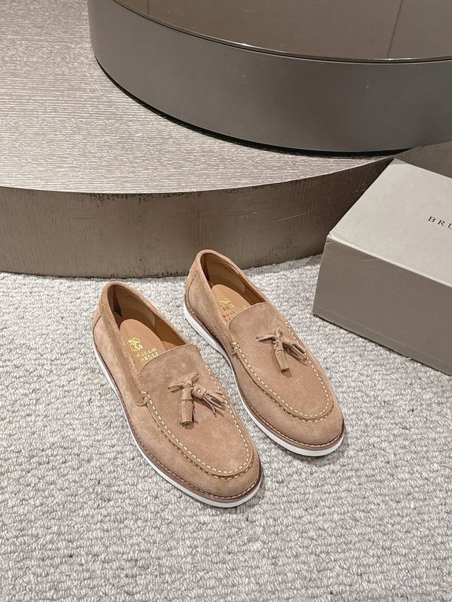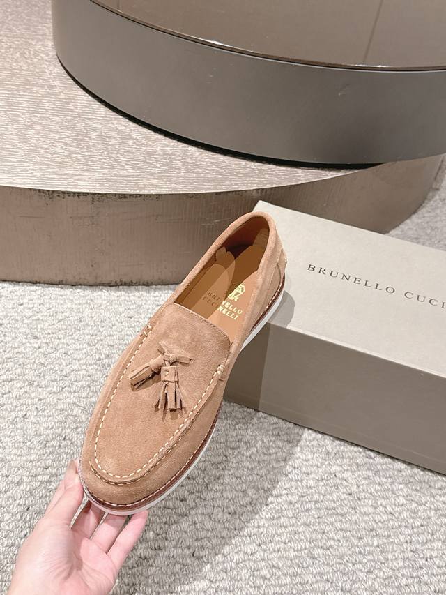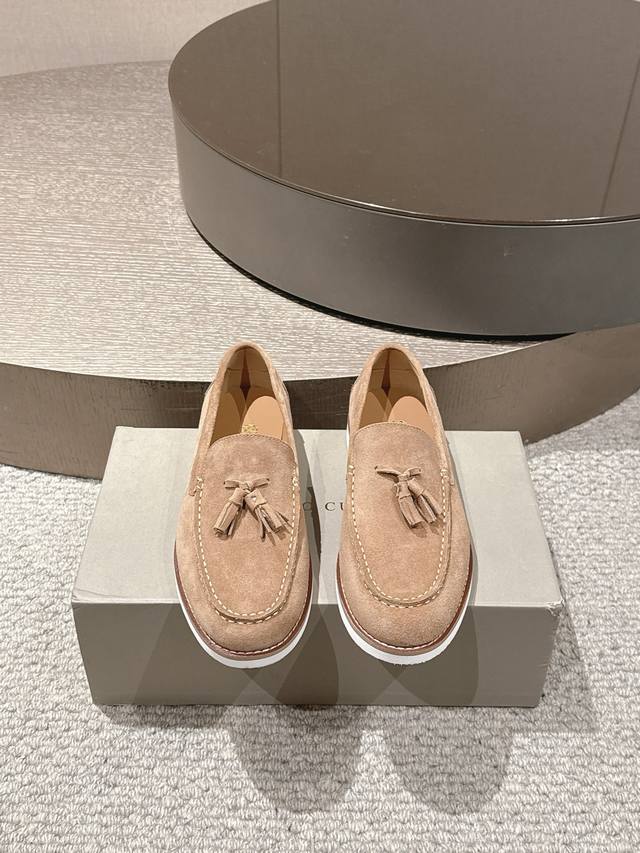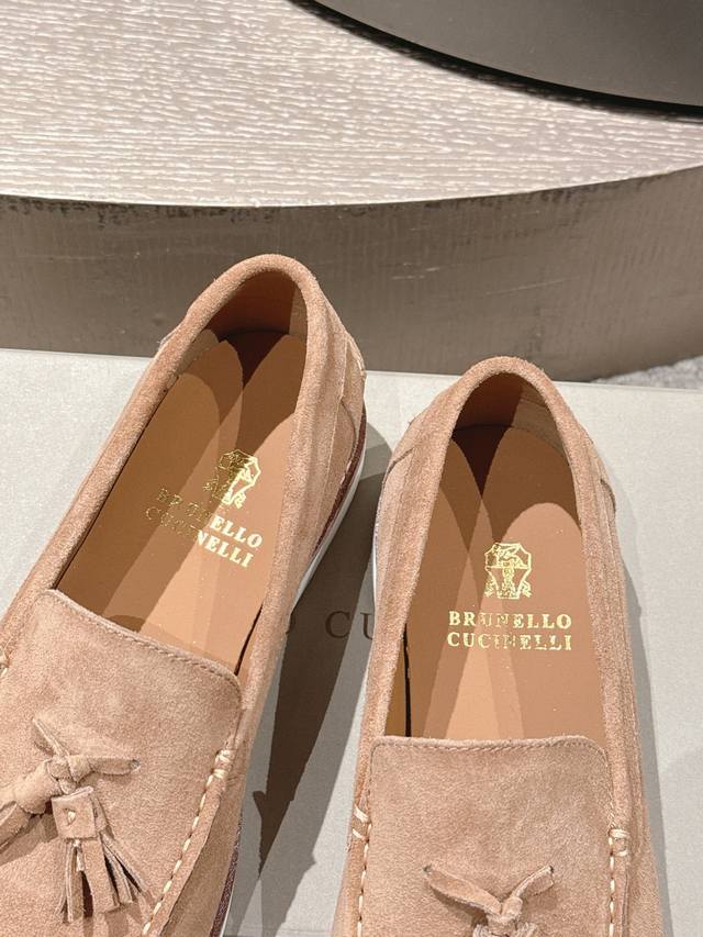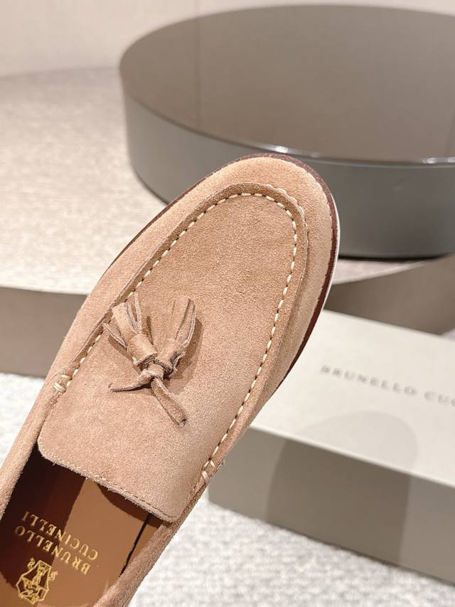 Bc Size :39-44 38.45.46.47可订做 2025Brunello Cucinelli 25Ss 春夏新款 乐福鞋 单鞋 Bc是意大利知名品牌,极简主义风格,纯手工串联珠链配饰!复古又高级!简约又大气,属于非常耐看的款式! 高级百搭之王,完全没有抵抗力!脚感很好很舒服!看起来平平无奇,穿起来又瘦又帅! 不局限任何场合,日常工作、时尚又干练!不管搭配 裙装、裤装、风衣大衣、都非常百搭!超级耐看!一年四季春夏秋冬皆适宜。 面料:原版进口牛反绒 内里:牛皮里 大底:原版开模大底。