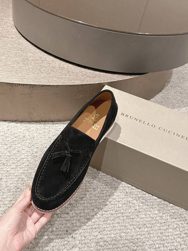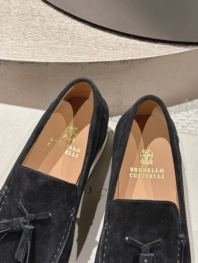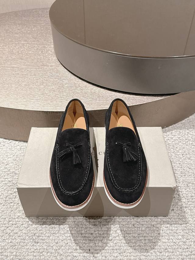 Bc Size :39-44 38.45.46.47可订做 2025Brunello Cucinelli 25Ss 春夏新款 乐福鞋 单鞋 Bc是意大利知名品牌,极简主义风格,纯手工串联珠链配饰!复古又高级!简约又大气,属于非常耐看的款式! 高级百搭之王,完全没有抵抗力!脚感很好很舒服!看起来平平无奇,穿起来又瘦又帅! 不局限任何场合,日常工作、时尚又干练!不管搭配 裙装、裤装、风衣大衣、都非常百搭!超级耐看!一年四季春夏秋冬皆适宜。 面料:原版进口牛反绒 内里:牛皮里 大底:原版开模大底。