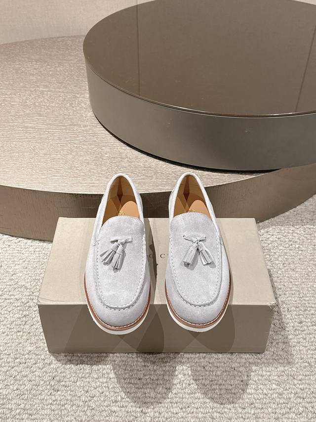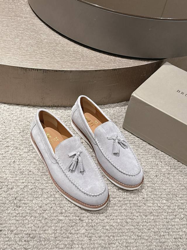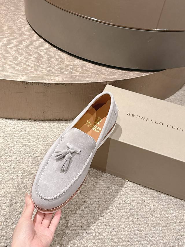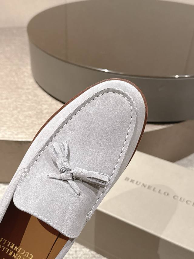 Bc Size :39-44 38.45.46.47可订做 2025Brunello Cucinelli 25Ss 春夏新款 乐福鞋 单鞋 Bc是意大利知名品牌,极简主义风格,纯手工串联珠链配饰!复古又高级!简约又大气,属于非常耐看的款式! 高级百搭之王,完全没有抵抗力!脚感很好很舒服!看起来平平无奇,穿起来又瘦又帅! 不局限任何场合,日常工作、时尚又干练!不管搭配 裙装、裤装、风衣大衣、都非常百搭!超级耐看!一年四季春夏秋冬皆适宜。 面料:原版进口牛反绒 内里:牛皮里 大底:原版开模大底。