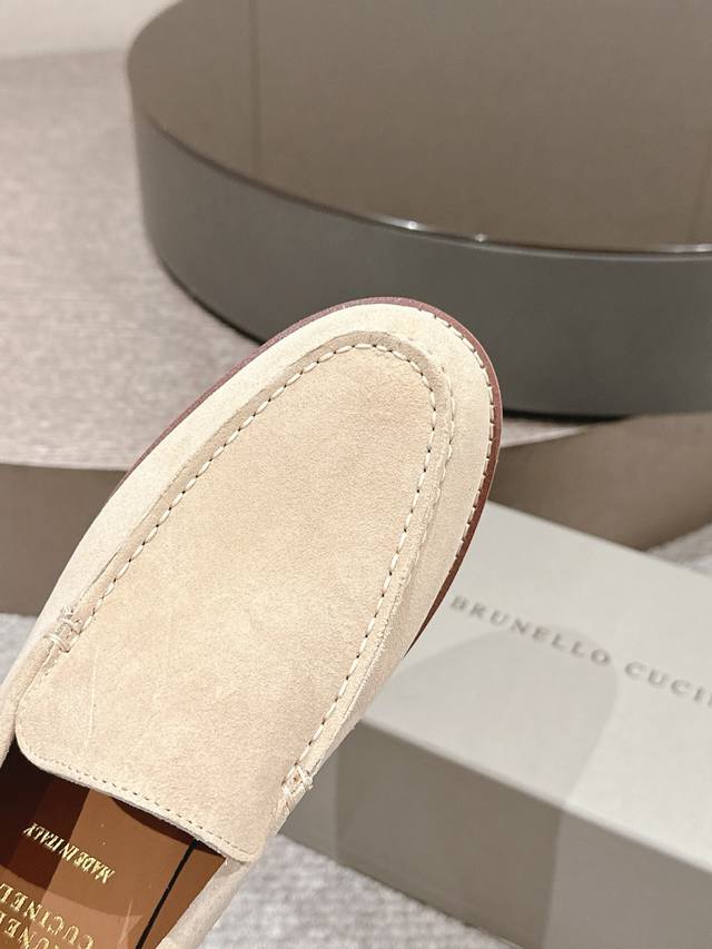 Bc Size :39-44 38.45.46.47可订做 2025Brunello Cucinelli 25Ss 春夏新款 乐福鞋 单鞋 Bc是意大利知名品牌,极简主义风格,纯手工串联珠链配饰!复古又高级!简约又大气,属于非常耐看的款式! 高级百搭之王,完全没有抵抗力!脚感很好很舒服!看起来平平无奇,穿起来又瘦又帅! 不局限任何场合,日常工作、时尚又干练!不管搭配 裙装、裤装、风衣大衣、都非常百搭!超级耐看!一年四季春夏秋冬皆适宜。 面料:原版进口牛反绒 内里:牛皮里 大底:原版开模大底 饰:原版开模定