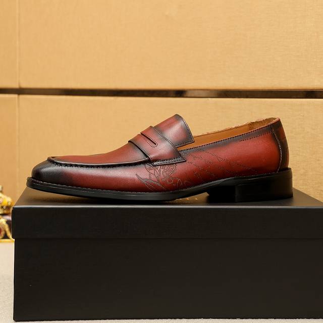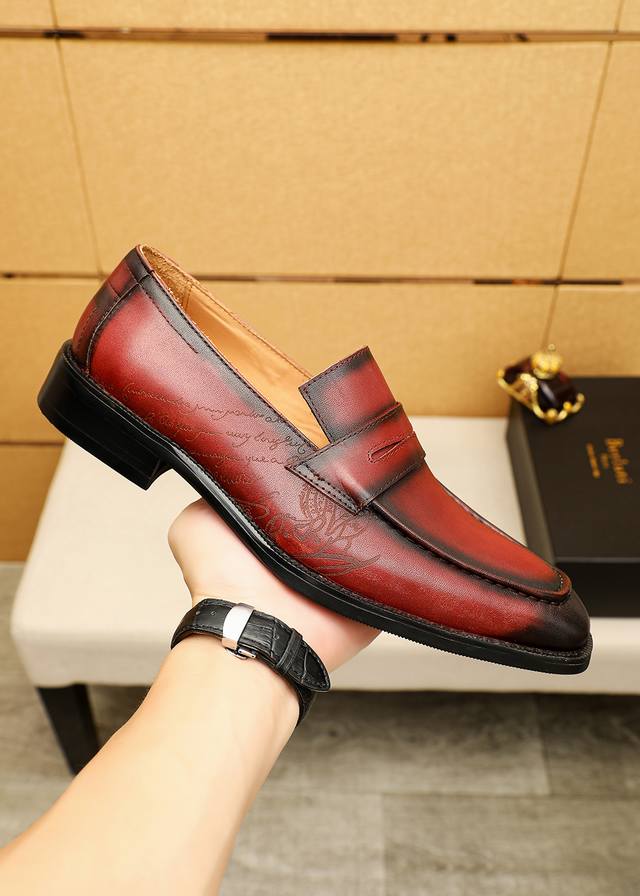 Berluti 伯尔鲁帝 爆款鞋顶端品牌奢侈顶级~质量 。 最新時尚休闲皮鞋..鞋面選用原版头层牛皮制造 水染皮内里 原版个性时尚柔软橡膠耐磨防滑大底,上脚轻巧