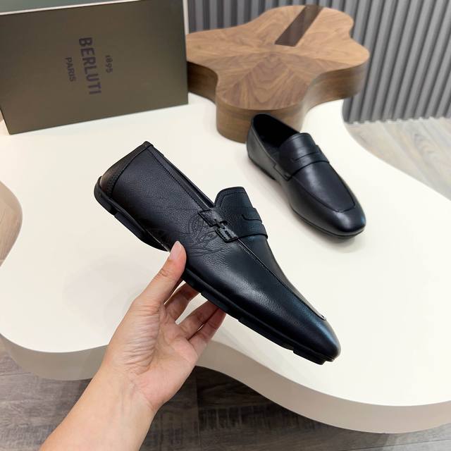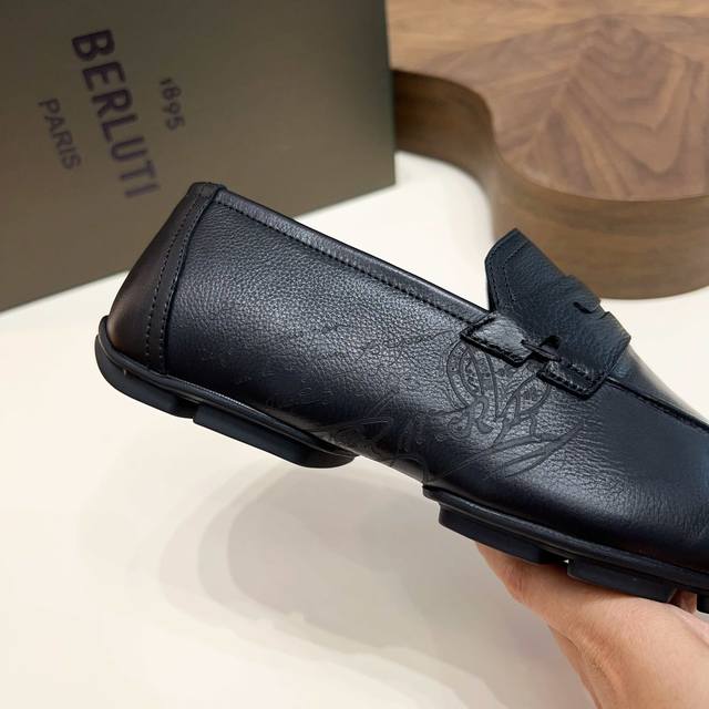 Berluti 布鲁提Eden Scritto图纹皮革便鞋男士套脚款,采用进口牛皮鞋面 柔软有型 舒适透气一体式裁剪 侧面Scritto图案高周波空压 小牛皮真