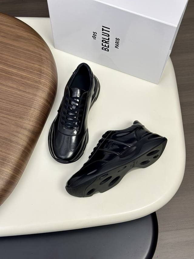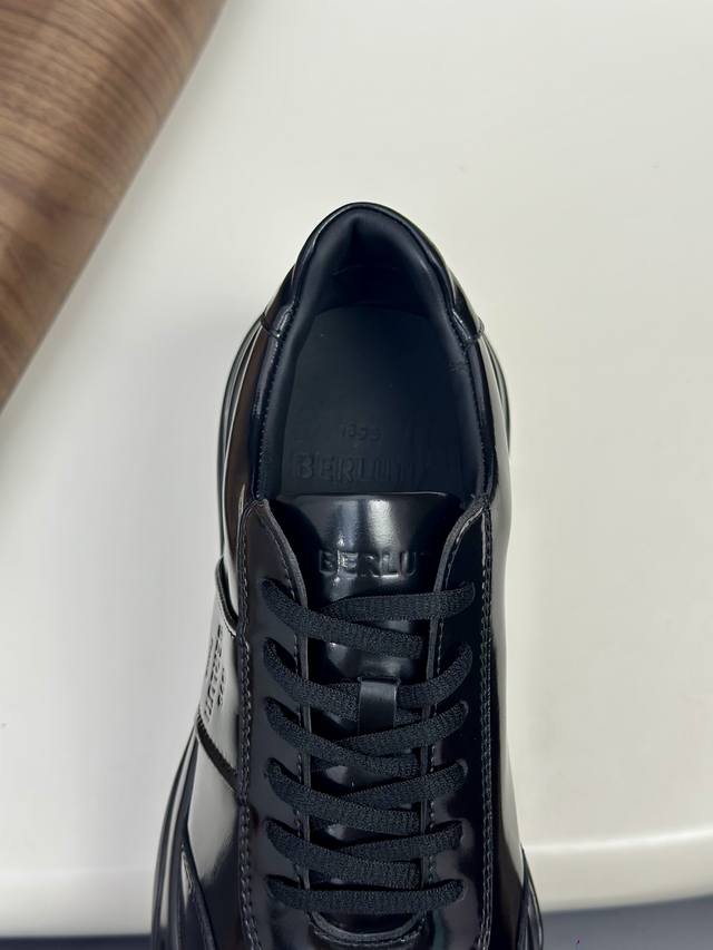 Berluti -高端品质 原单 休闲运动板鞋 -鞋面:进口擦色开边珠小牛皮、鞋身.鞋舌.空压品牌Logo -内里:水染牛皮 -大底:超轻Tpu发泡 橡胶;双色