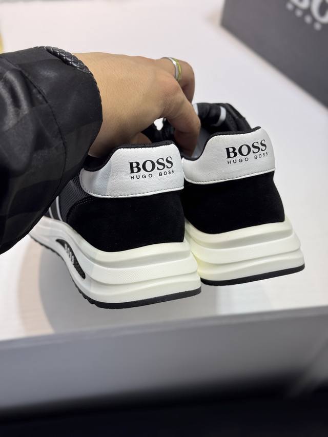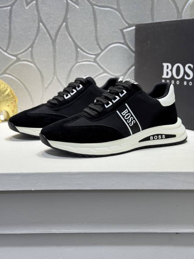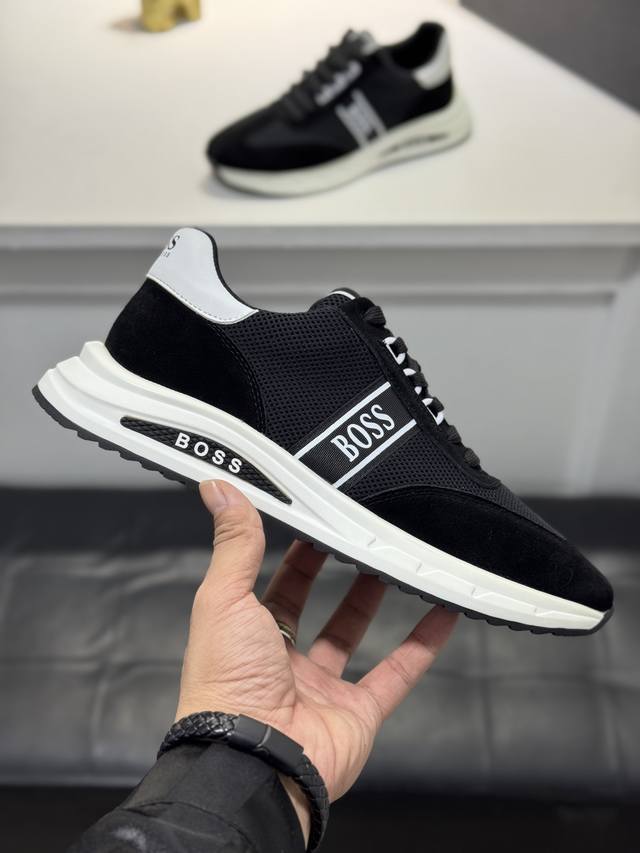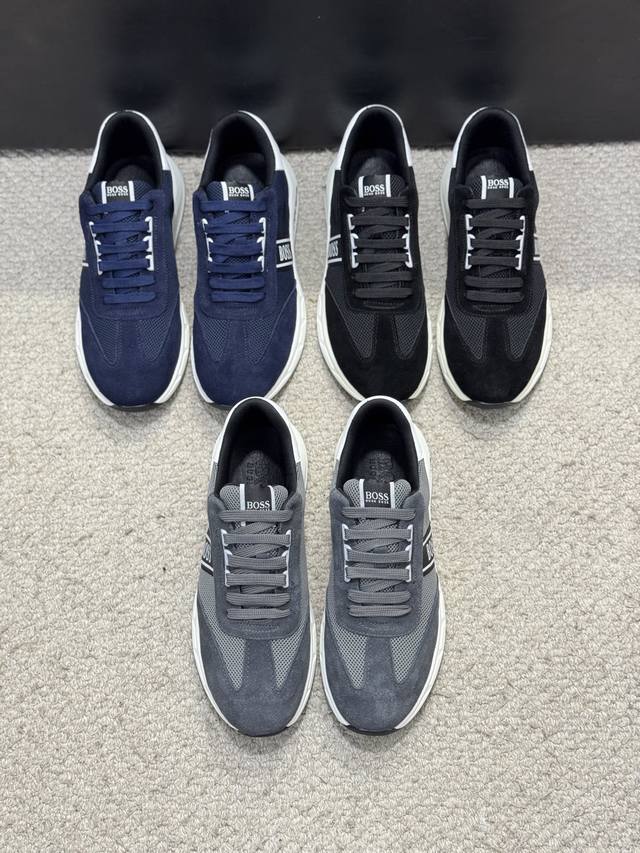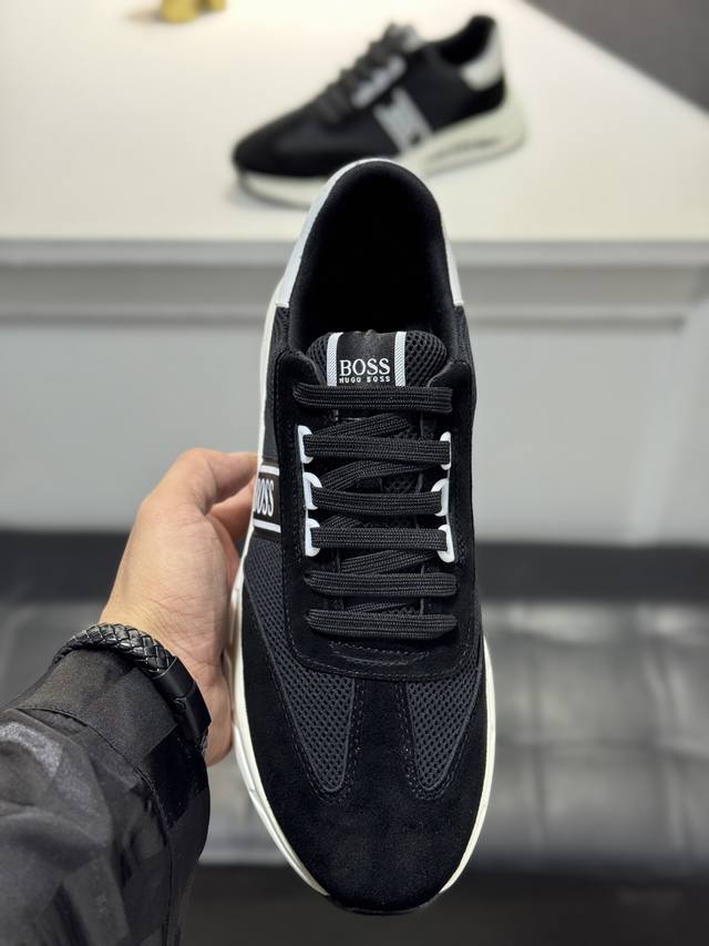 Bos* 男士精品 Boss 运动男鞋,本款是官方主打经典款,1:1质量,原厂名师制作,采用牛皮搭配面料舒适透气网布内里。完美楦型,大方时尚的设计,吸引了众多消