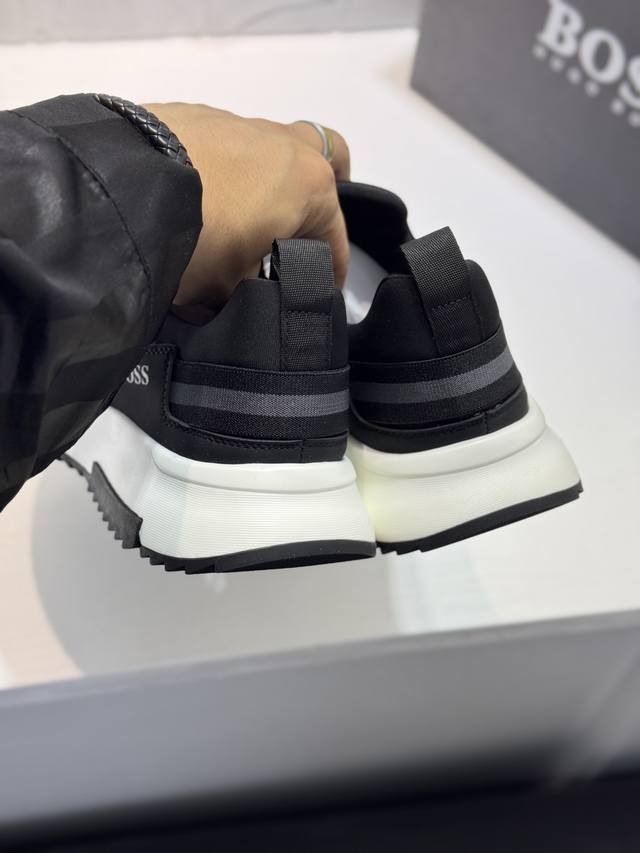 Bos* 男士精品 Boss 运动男鞋,本款是官方主打经典款,1:1质量,原厂名师制作,采用牛皮搭配面料舒适透气网布内里。完美楦型,大方时尚的设计,吸引了众多消