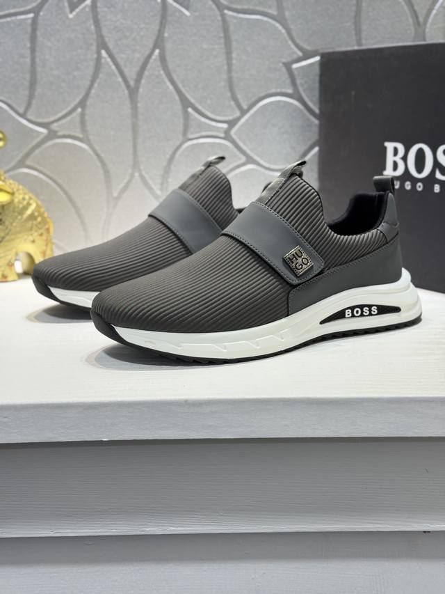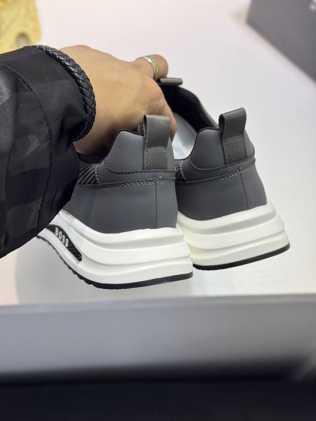 Bos* 男士精品 Boss 运动男鞋,本款是官方主打经典款,1:1质量,原厂名师制作,采用牛皮搭配面料舒适透气网布内里。完美楦型,大方时尚的设计,吸引了众多消