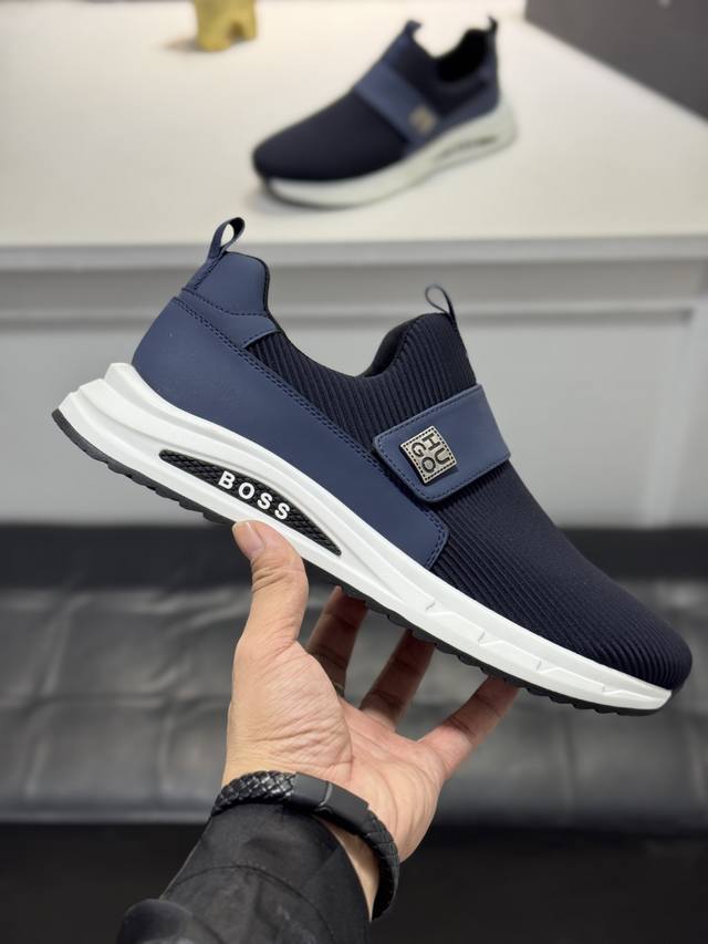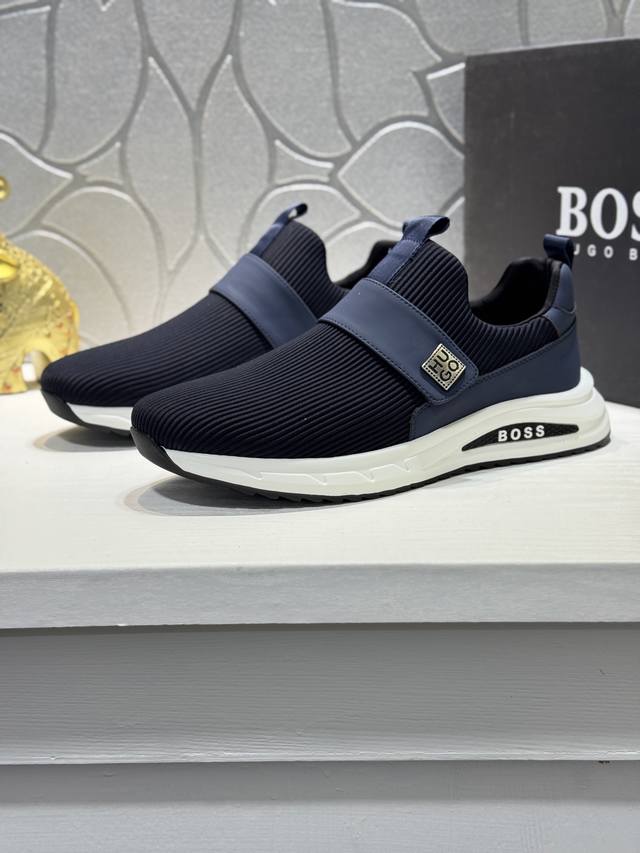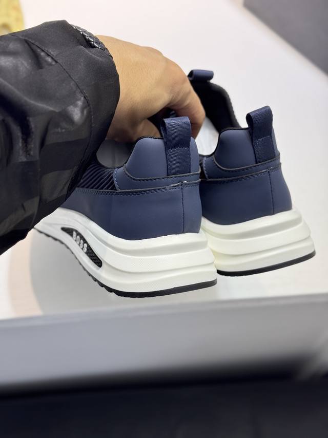 Bos* 男士精品 Boss 运动男鞋,本款是官方主打经典款,1:1质量,原厂名师制作,采用牛皮搭配面料舒适透气网布内里。完美楦型,大方时尚的设计,吸引了众多消