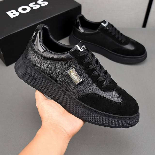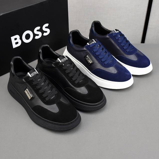 Boss最新款休闲男鞋 休闲时尚爆款 版型简洁大气 面料采用进口绣花绒面磨砂皮 羊皮内里,原版耐磨Tr大底,2色可选,码数38-44 45可定做