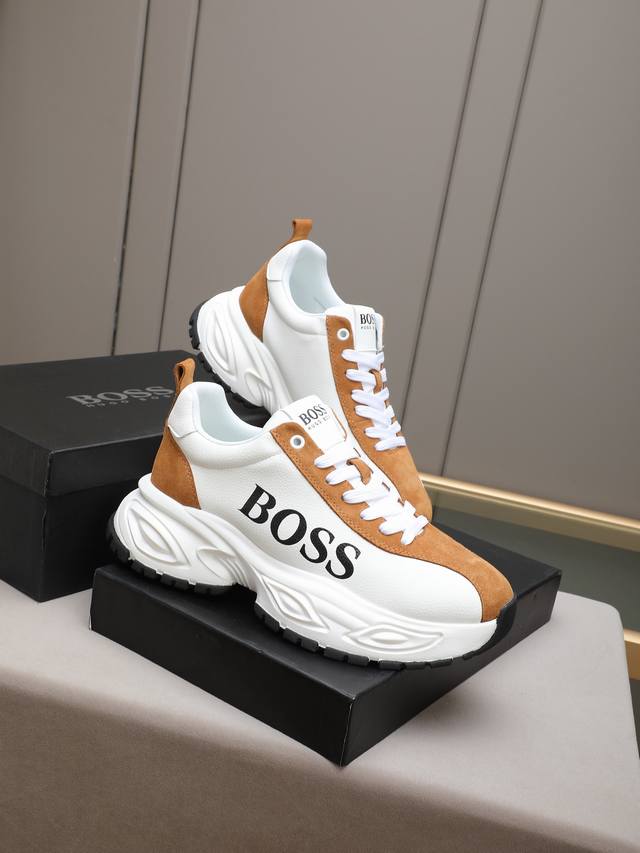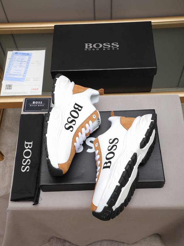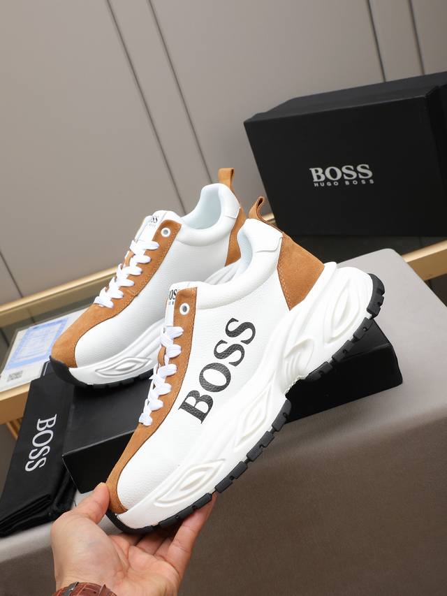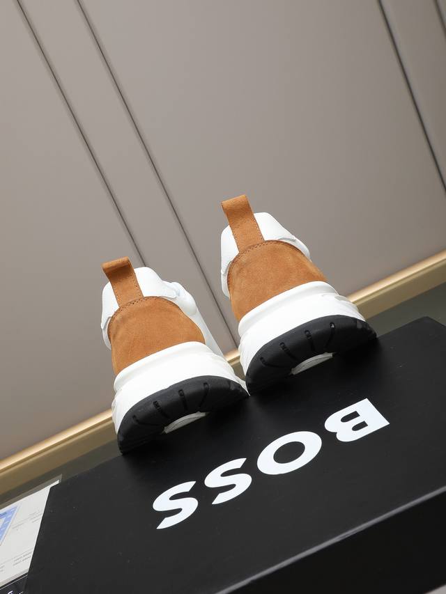 / Boss 时尚顶级潮牌,一款能驾驭各种风格男鞋,鞋面由多种材质拼接而成,内里为进口网布,吸汗舒适,发泡大底设计是重中之重-轻便.舒适。极度考验工艺要求:双色可选