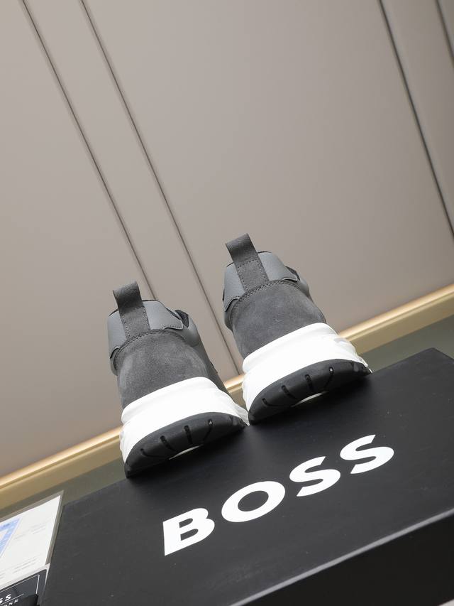 / Boss 时尚顶级潮牌,一款能驾驭各种风格男鞋,鞋面由多种材质拼接而成,内里为进口网布,吸汗舒适,发泡大底设计是重中之重-轻便.舒适。极度考验工艺要求:双色可选