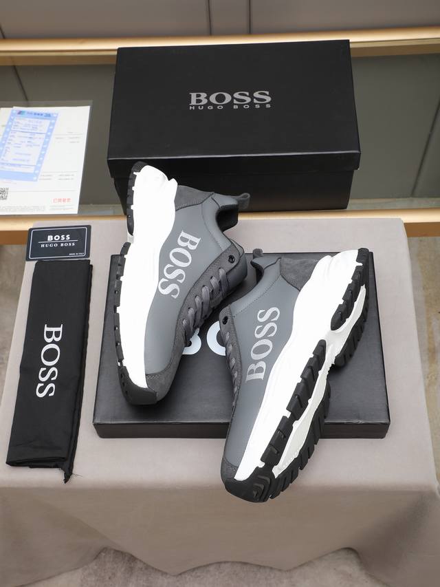 Boss 时尚顶级潮牌,一款能驾驭各种风格男鞋,鞋面由多种材质拼接而成,内里为进口网布,吸汗舒适,发泡大底设计是重中之重-轻便.舒适。极度考验工艺要求:双色可选:38-44 45定做 DDD