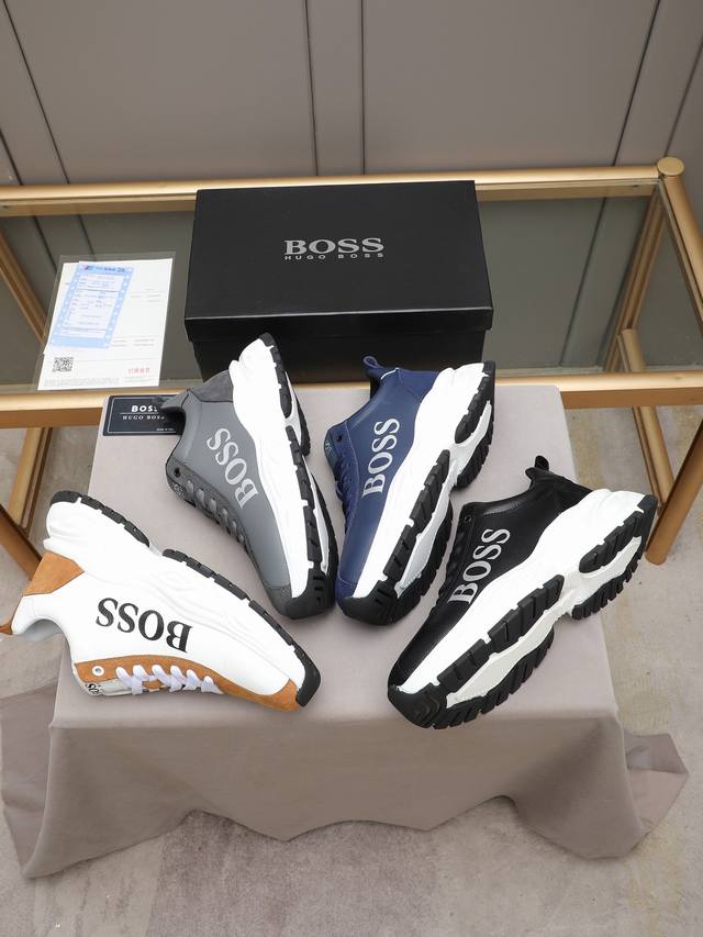/ Boss 时尚顶级潮牌,一款能驾驭各种风格男鞋,鞋面由多种材质拼接而成,内里为进口网布,吸汗舒适,发泡大底设计是重中之重-轻便.舒适。极度考验工艺要求:双色可选