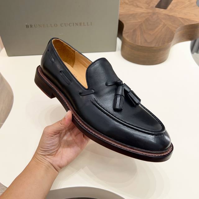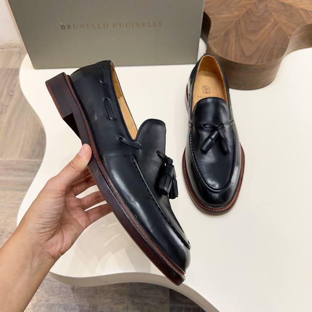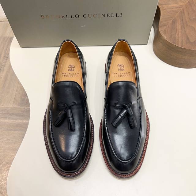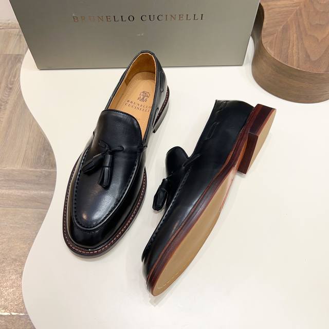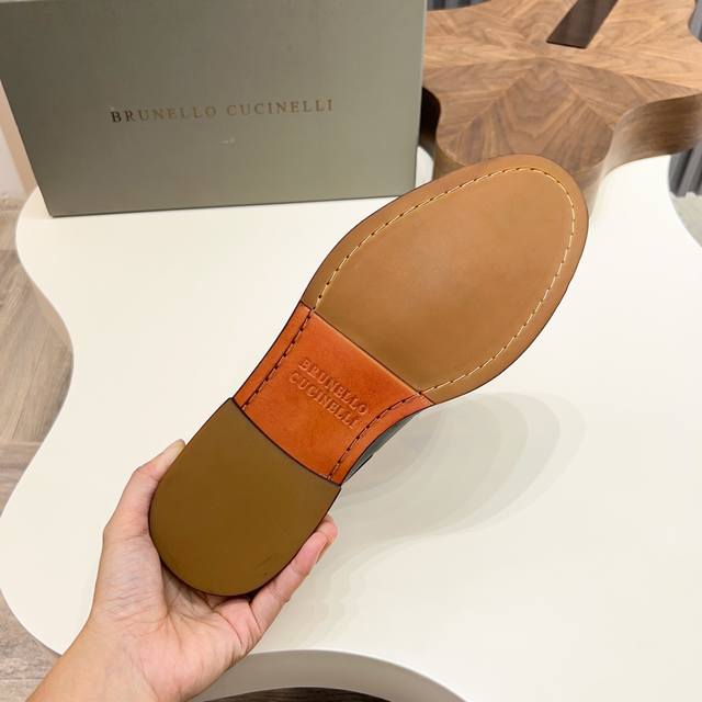 Brunello Cucineli乐福鞋 精致材料与便士乐福鞋的经典格调相遇,营造这款鞋子的高雅休闲风格。如天鹅绒一般柔软的丝光牛绒皮突出鞋子的非正装设计,轻盈而灵感的制作结构则为您的每一天带来舒适之至的足下体验。原版真皮大底,真皮中底板 羊京绒面皮,水染牛皮内里, Size:39-46 38.45.46.订做