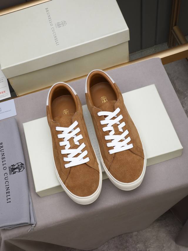 Brunello Cucinelli最新系列休闲 来自意大利的世界顶级奢侈品牌,被誉为低调奢华的 “山羊绒之王” 和 “界真正的奢侈品”。 DDD 此款Bc鞋面精选牛皮鞋面,鞋舌饰以Bc刺绣字母Logo,后跟丝印品牌徽章,内里是本白色苯染专用小羊皮,上脚舒服透气不闷脚,不掉色,不打滑,环保无害T+大底一体成型,干净不开胶。质感爆棚,看得见的奢华,38-44 45定做 DDD