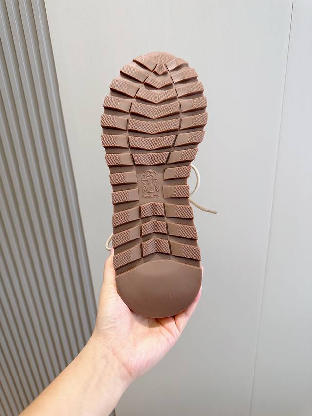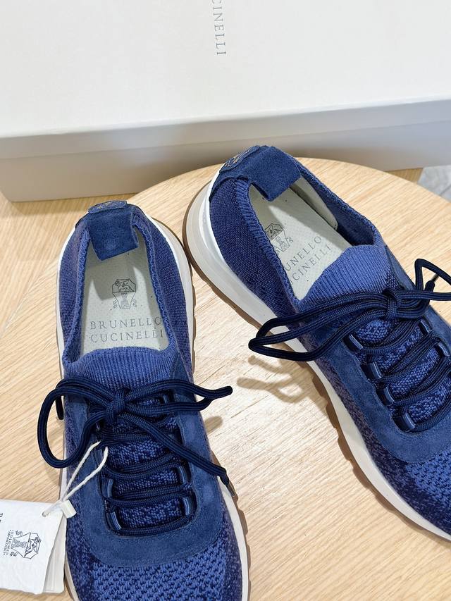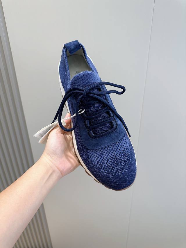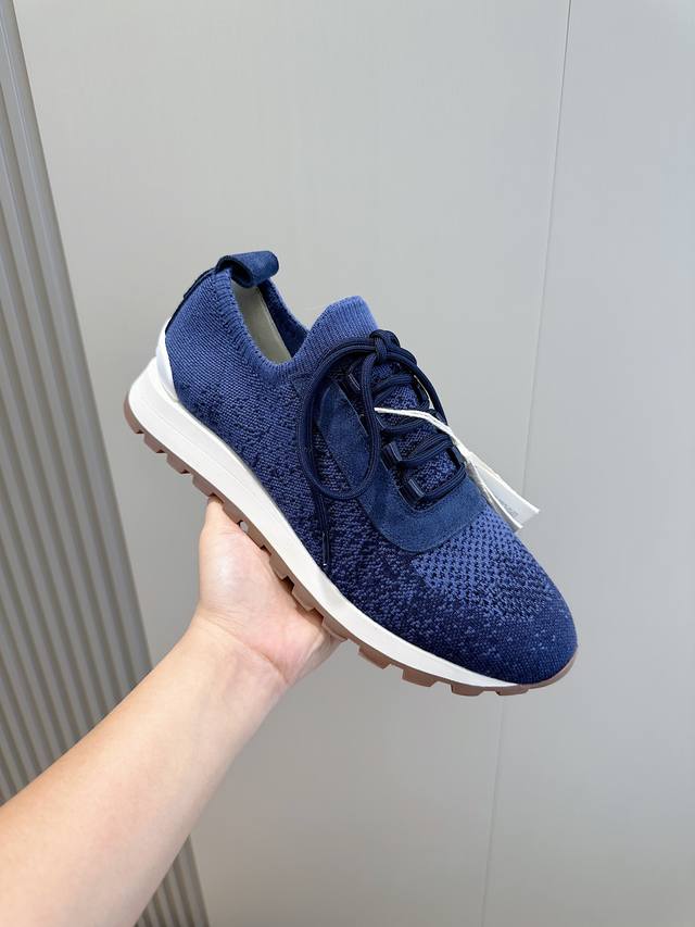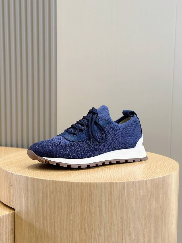 Brunello Cucinelli飞织男士运动鞋 珍贵纱启发了新运动鞋的设计,飞织鞋面以现代方式诠释经典款式。半抛光小牛皮饰条凸显在薄而舒适的针织物上,以鲜明的材质对比彰显精致。 Size:39-44 3845定制