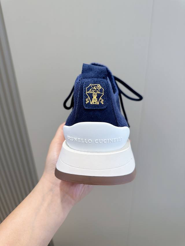 / Brunello Cucinelli飞织男士运动鞋 珍贵纱启发了新运动鞋的设计,飞织鞋面以现代方式诠释经典款式。半抛光小牛皮饰条凸显在薄而舒适的针织物上,以鲜明