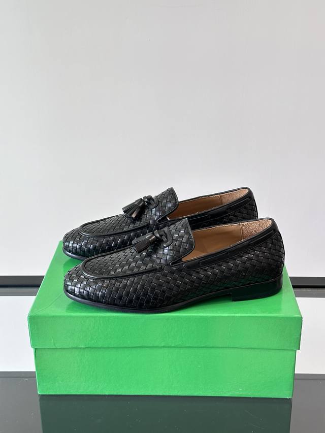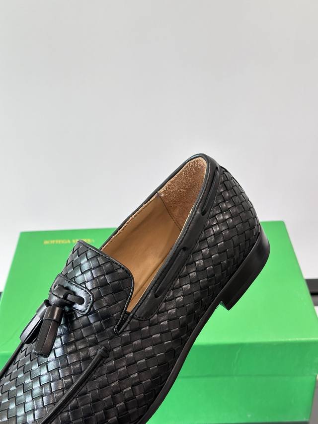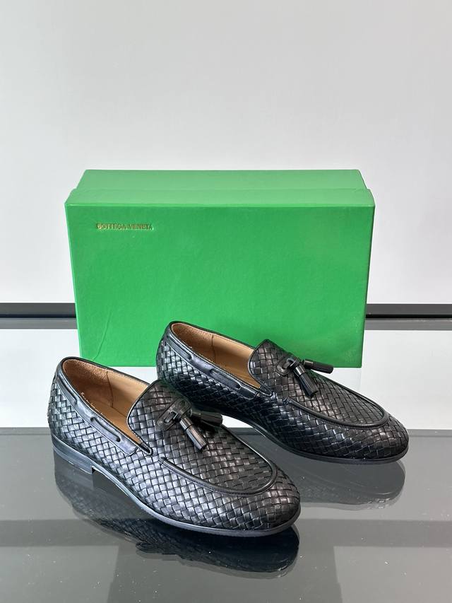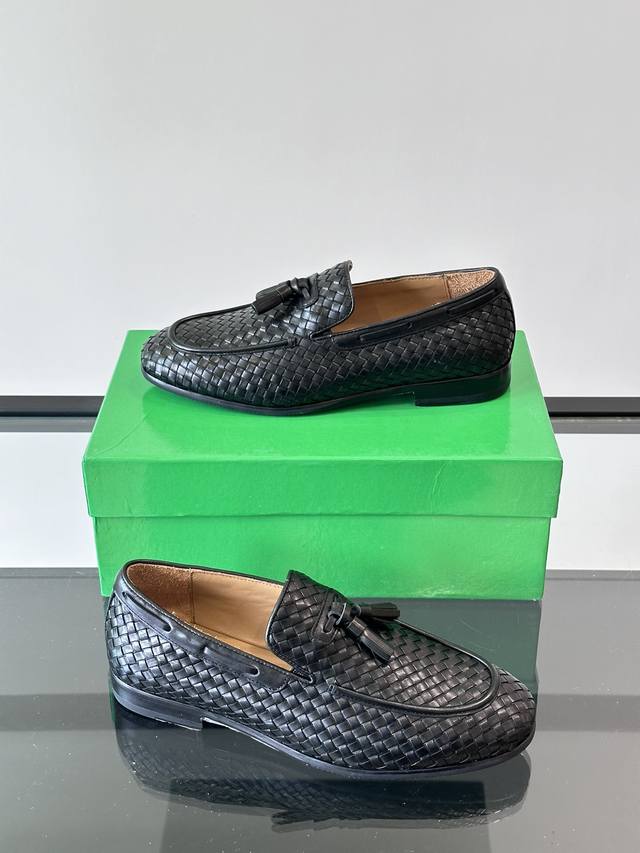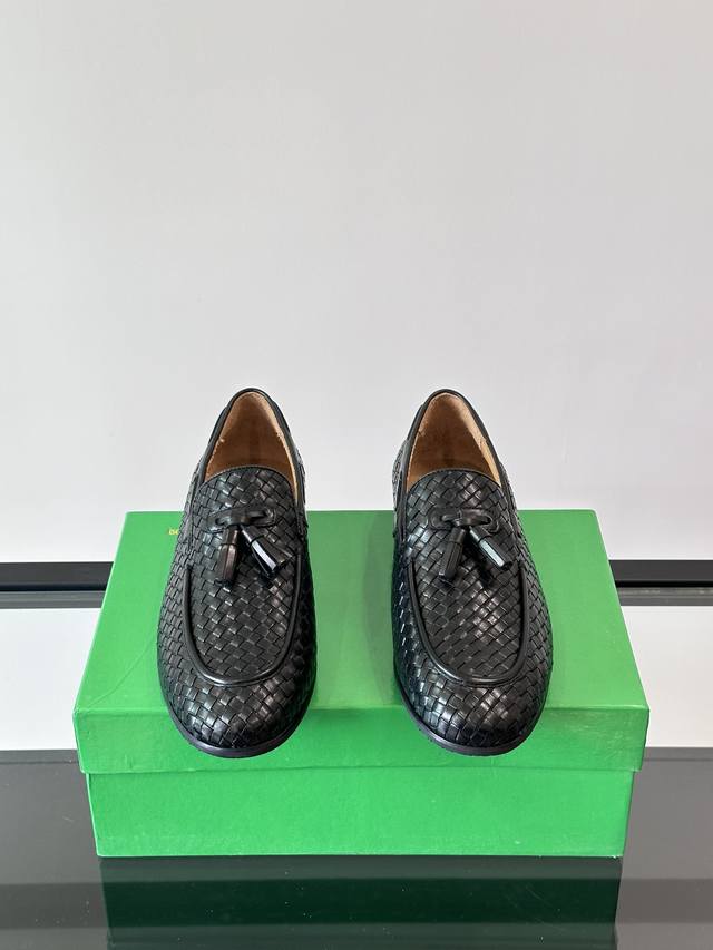 / Bv 新款男士休闲一脚蹬真皮大底皮鞋,这款休闲一脚蹬皮鞋选用柔软小牛皮纯手工编织,成就轻盈质地,精致真皮衬里,经典鞋履全方位演绎是精致的休闲风格。灵活的撞搭结构