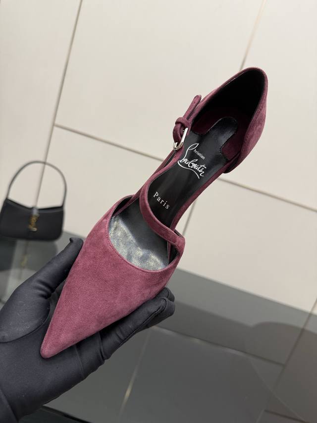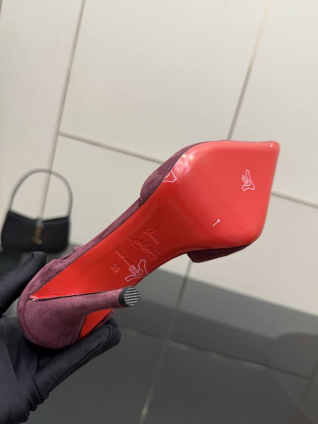 Christian Louboutin路铂廷高跟鞋,漆皮绒面面料,红色鞋底,一字带设计显瘦。内里羊皮,意大利真皮大底,舒适好走。 码数35-42 40.41.42定做