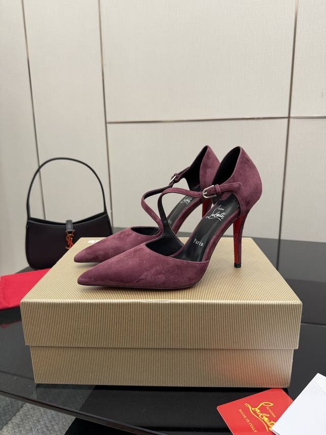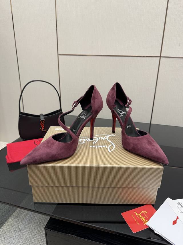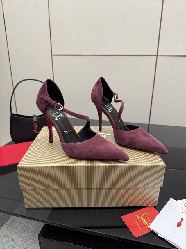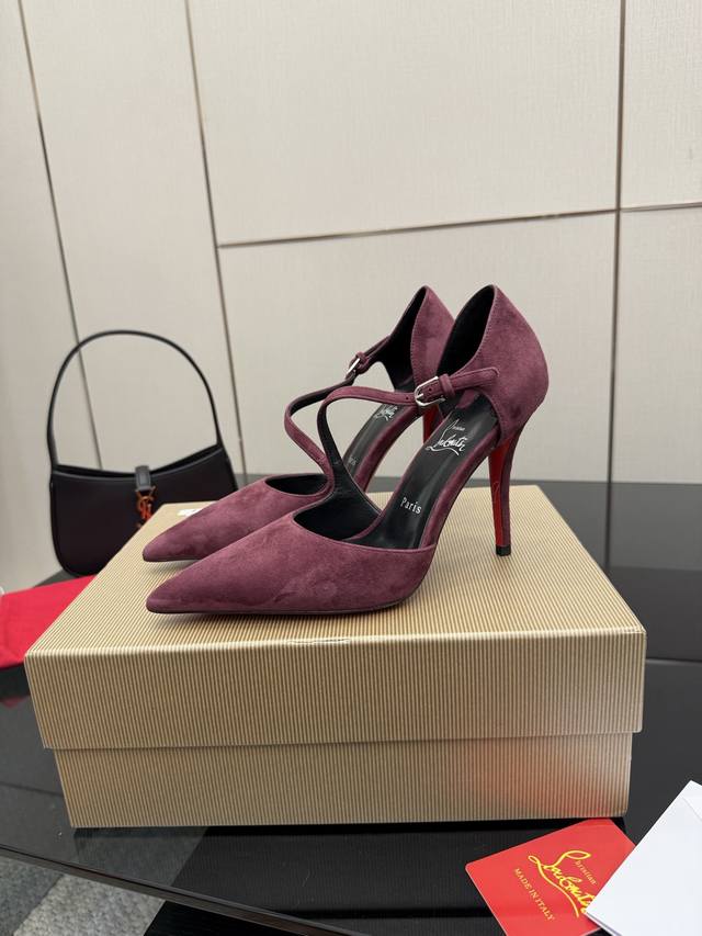 / Christian Louboutin路铂廷高跟鞋,漆皮绒面面料,红色鞋底,一字带设计显瘦。内里羊皮,意大利真皮大底,舒适好走。 码数35-42 40.41.4