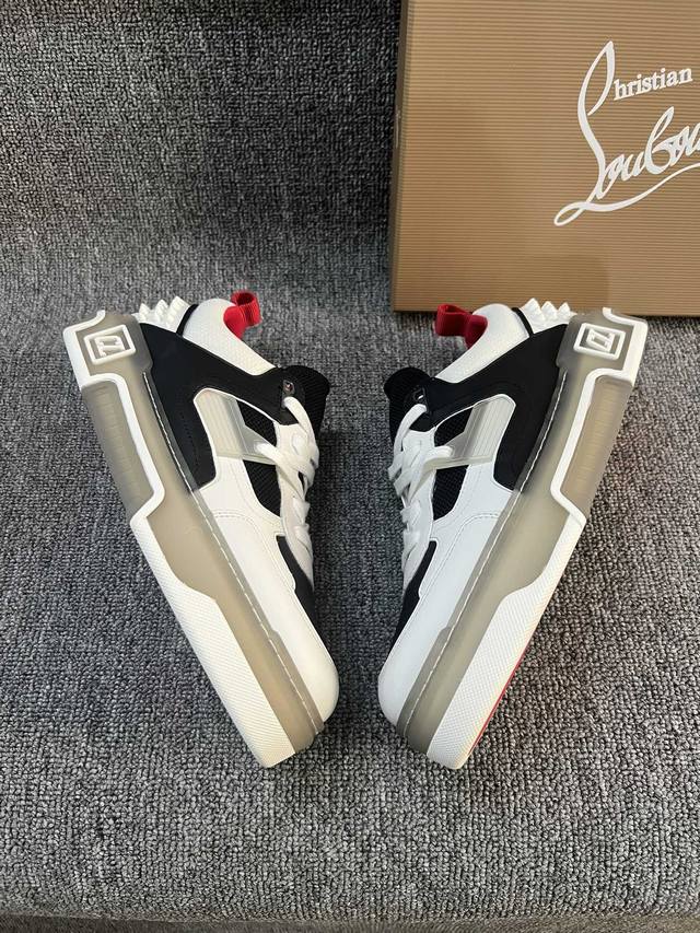 Cl红底鞋 最新情侣款 上脚舒适 引领时尚 大底采用Tpu双色组合底 耐磨防滑 鞋面采用进口高密透气飞织 +加头层牛皮 垫脚采用高密回弹Eva发泡+透气莱卡热压工艺组合永久不脱层 全套包装 配码35-47码实价