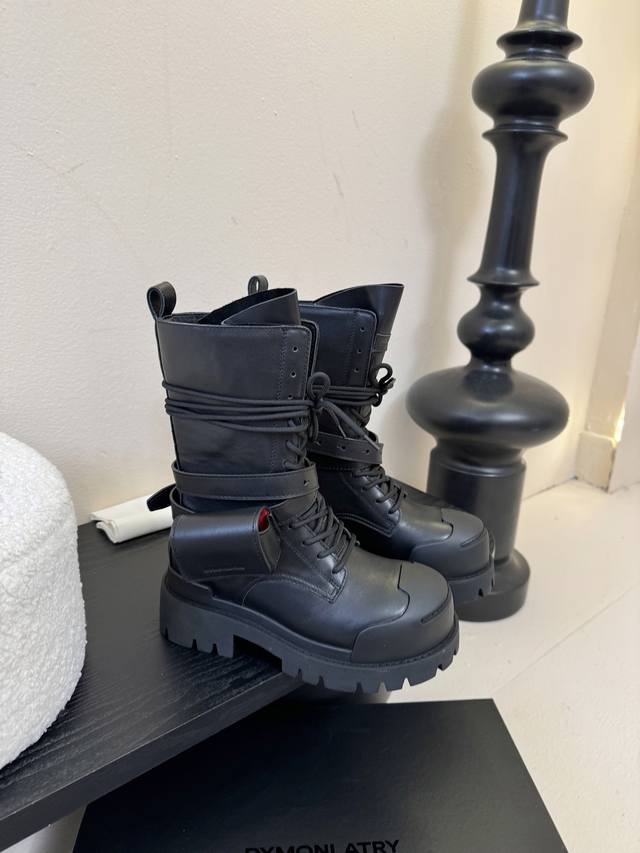 / Dymonlatry 新品 这双工装靴 潮到犯规 大厚底自带拉高Buff 绑带+小口袋设计超有个性 穿上直接Slay全场 酷Girl闭眼冲~ 鞋面进口牛皮.麂皮