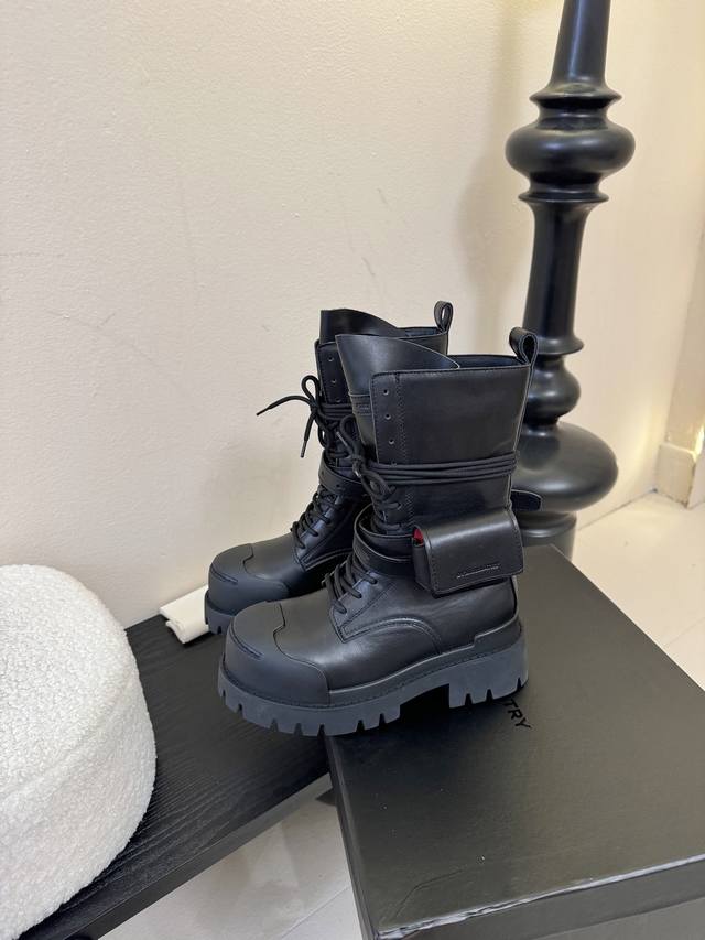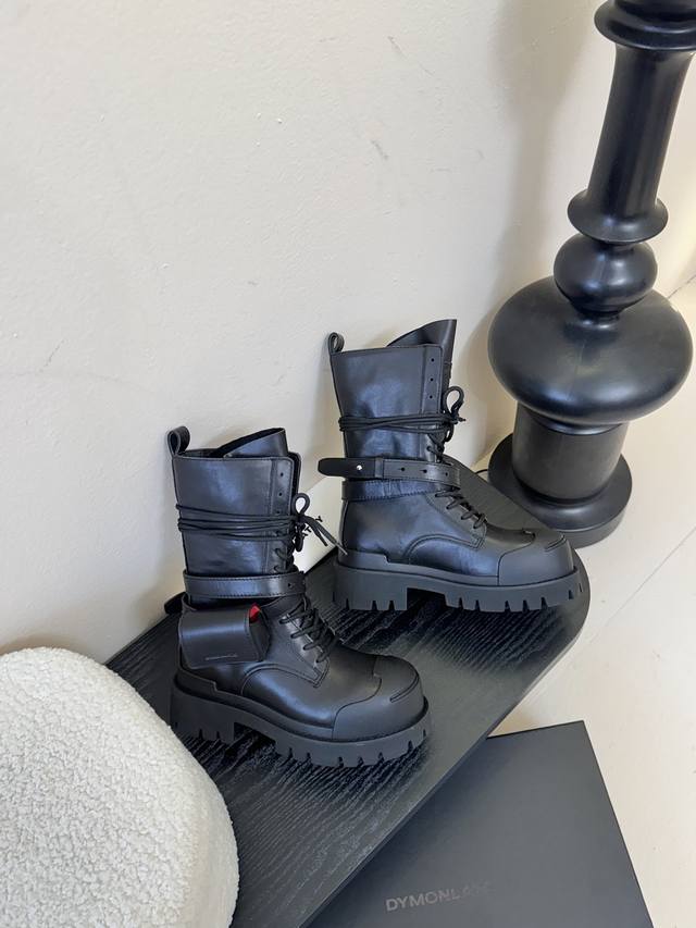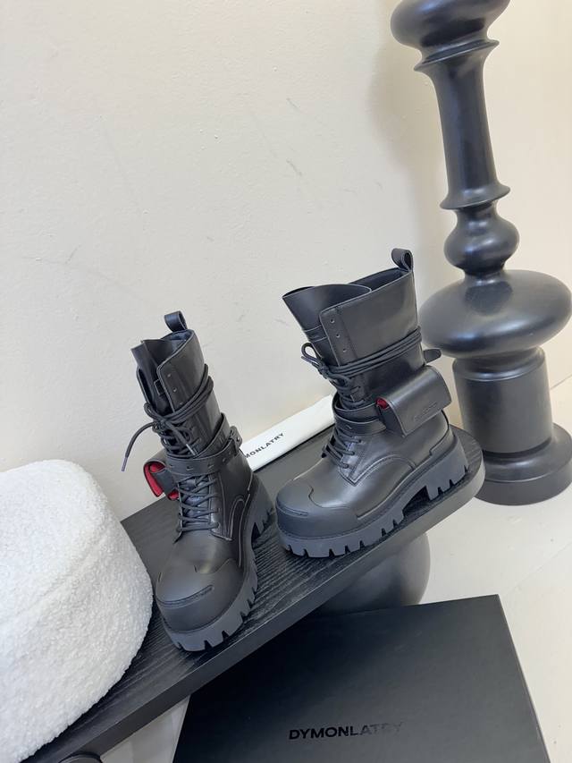 Dymonlatry 新品 这双工装靴 潮到犯规 大厚底自带拉高Buff 绑带+小口袋设计超有个性 穿上直接Slay全场 酷Girl闭眼冲~ 鞋面进口牛皮.麂皮