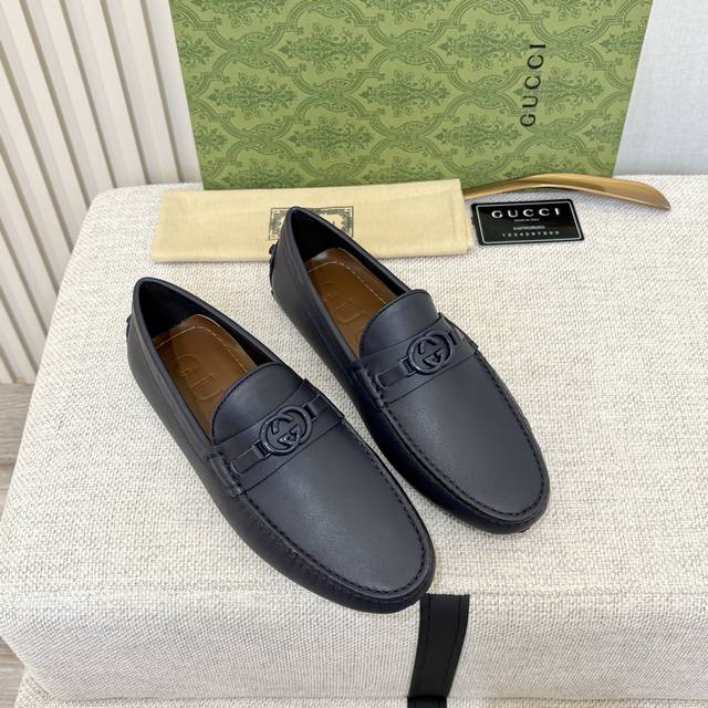 G家 男士豆豆鞋 2025官网同步 高端品质 市场顶级版本 进口头层小牛皮黑色牛里垫脚水染棕牛里。 尺码38-45