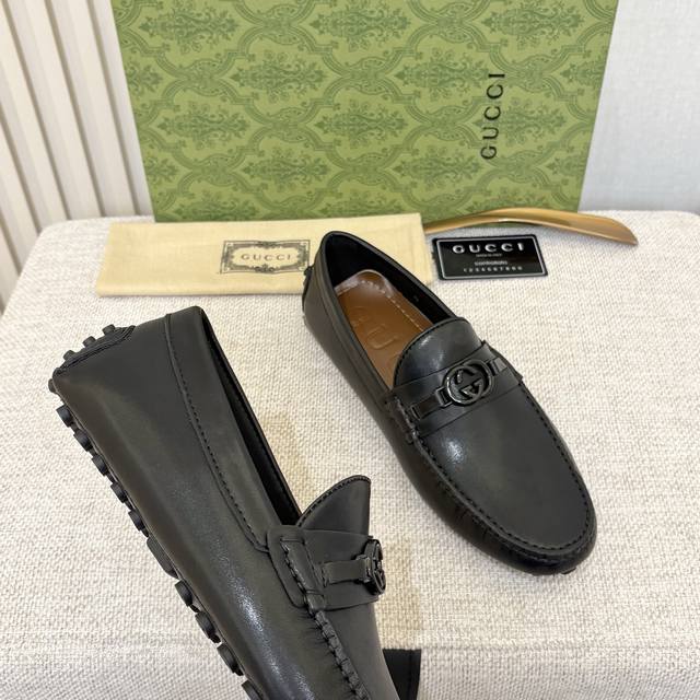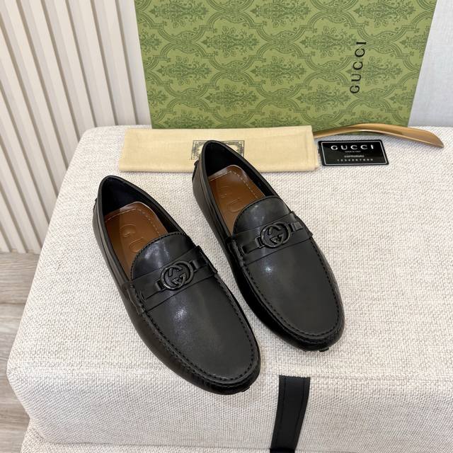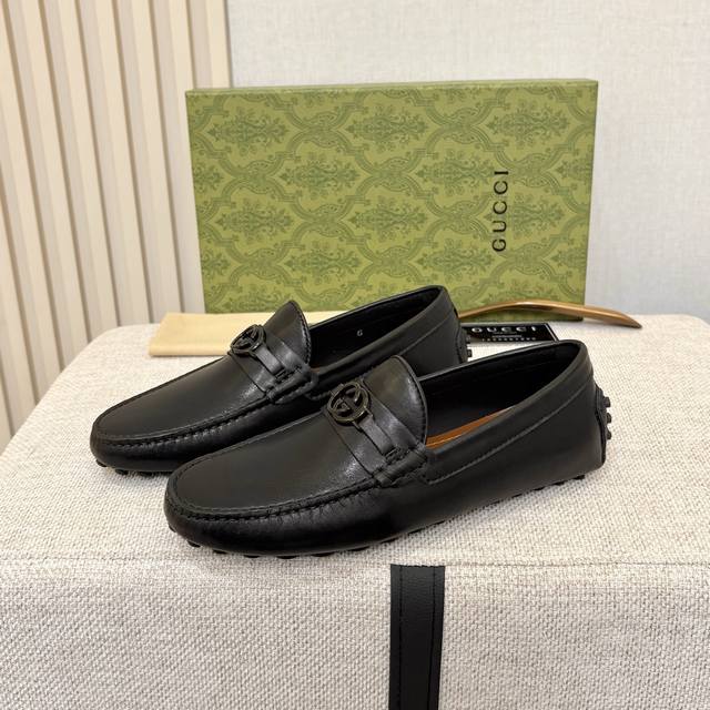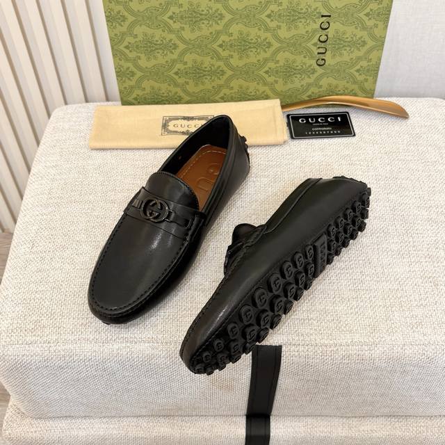 G家 男士豆豆鞋 2025官网同步 高端品质 市场顶级版本 进口头层小牛皮黑色牛里垫脚水染棕牛里。 尺码38-45