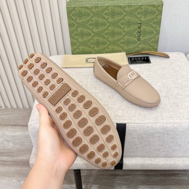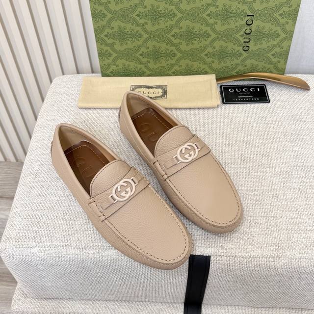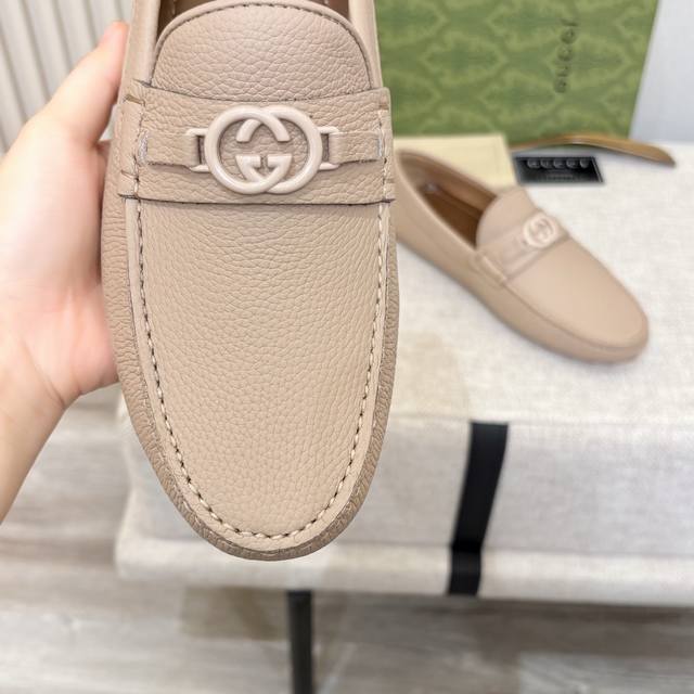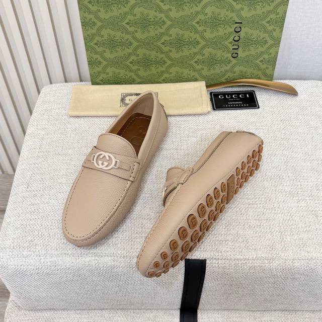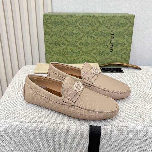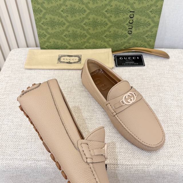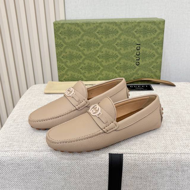 G家 男士豆豆鞋 2025官网同步 高端品质 市场顶级版本 进口头层荔枝纹杏色牛里垫脚水染棕牛里。 尺码38-45