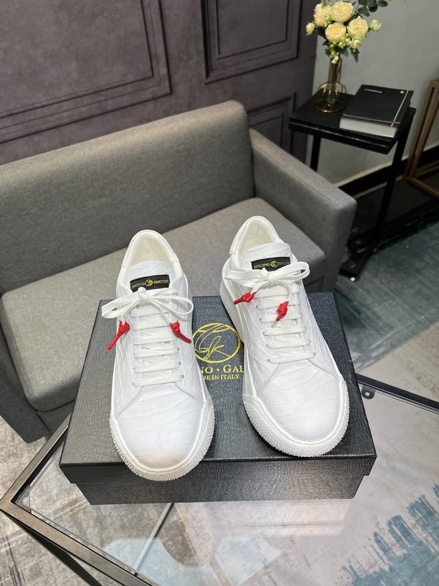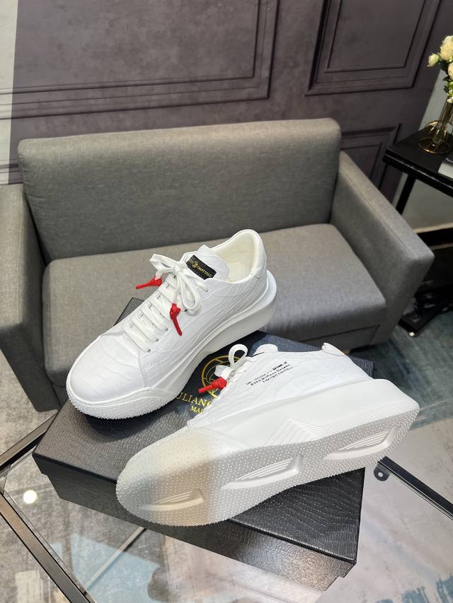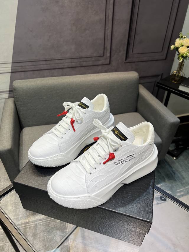Galiano Nemesis 纳帕皮革 蛇纹厚底 5.5Cm 低帮 生活休闲鞋 男款休闲鞋,牛皮内里,橡胶大底,码数:39-44 45定做不退换