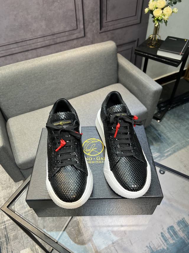 Galiano Nemesis 纳帕皮革 蛇纹厚底 5.5Cm 低帮 生活休闲鞋 男款休闲鞋,牛皮内里,橡胶大底,码数:39-44 45定做不退换