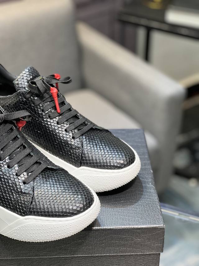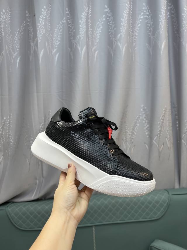 Galiano Nemesis 纳帕皮革 蛇纹厚底 5.5Cm 低帮 生活休闲鞋 男款休闲鞋,牛皮内里,橡胶大底,码数:39-44 45定做不退换 DDD