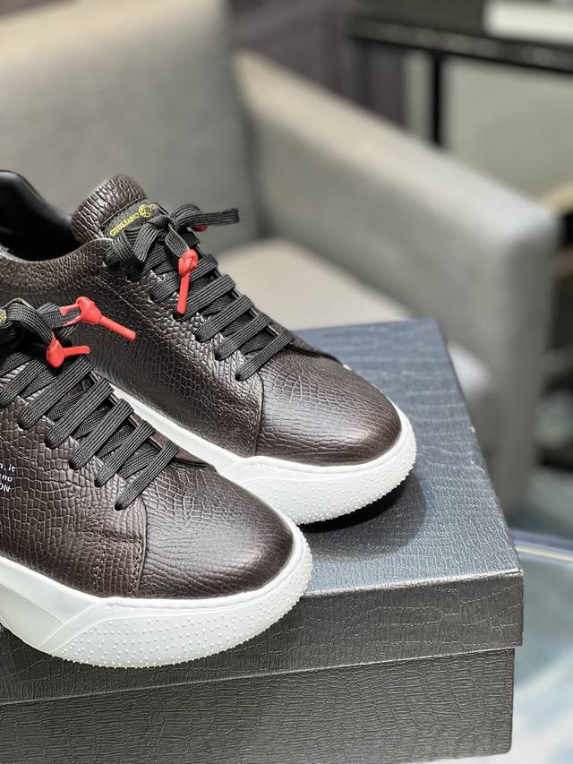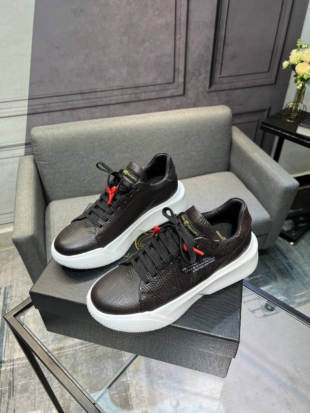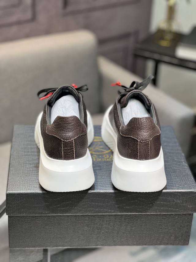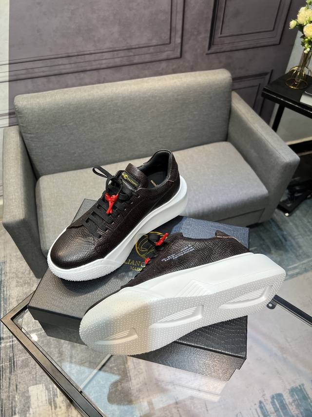 Galiano Nemesis 纳帕皮革 蛇纹厚底 5.5Cm 低帮 生活休闲鞋 男款休闲鞋,牛皮内里,橡胶大底,码数:39-44 45定做不退换