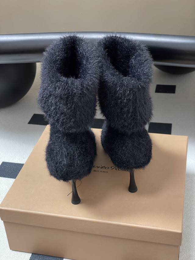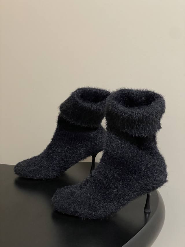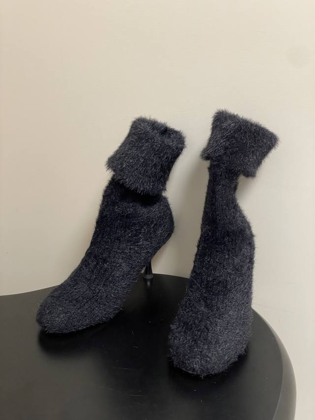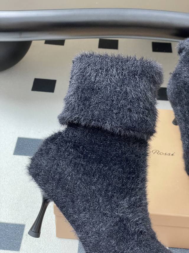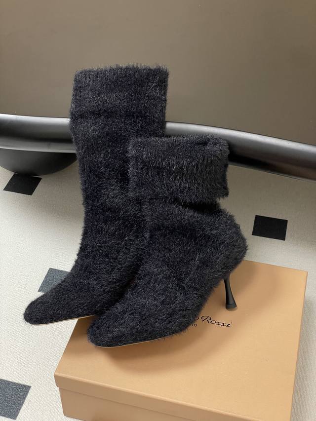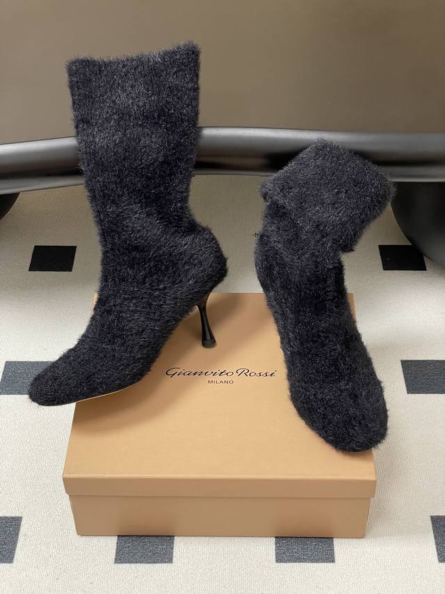 Gianvito Rossi 25Wf秋冬新款 罗西 Gr毛线针织高跟袜子靴 当针织的温柔肌理邂逅高跟的利落锋芒,袜子靴便以独特美学 重新定义秋冬足部时尚。精选 48 针精梳棉针织面料如第二层肌肤般紧密贴合脚踝与小腿随步态自然舒展却不紧绷行走时细微褶皱更添慵懒质感。鞋跟是设计的灵魂所在,7Cm细高跟采用哑光金属涂层从靴筒延伸至鞋底的流畅线条既保留了细高跟的优雅气场 又通过加宽鞋跟基底增强稳定性。 鞋面:定制毛线针织 内里垫脚:羊皮 鞋底:意大利真皮大底 跟高:7.5Cm 码数:35-39 34 40 41