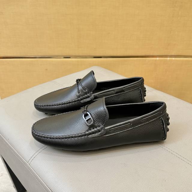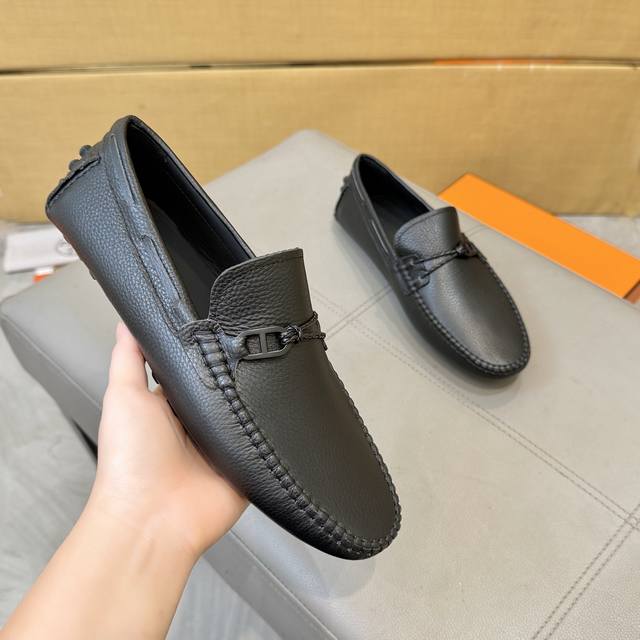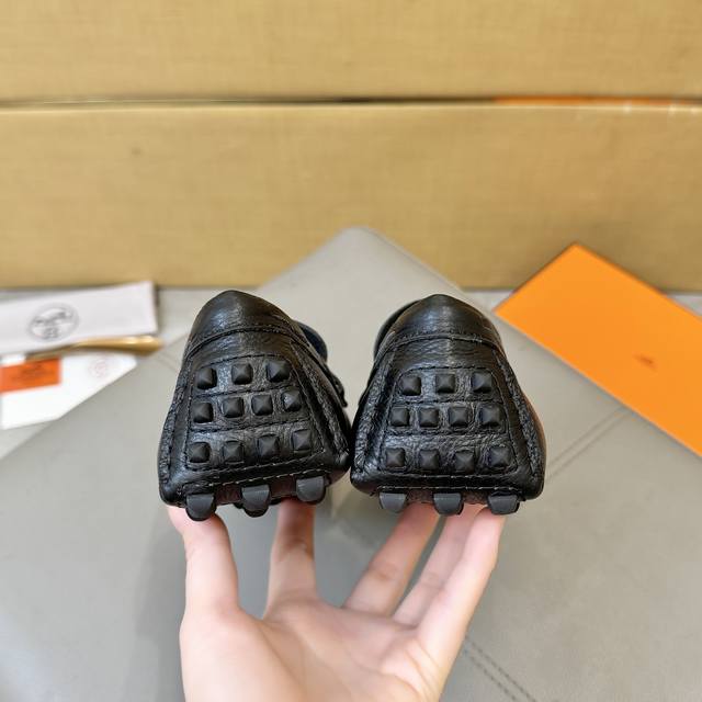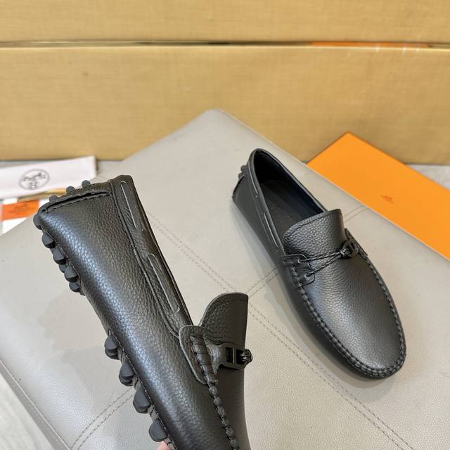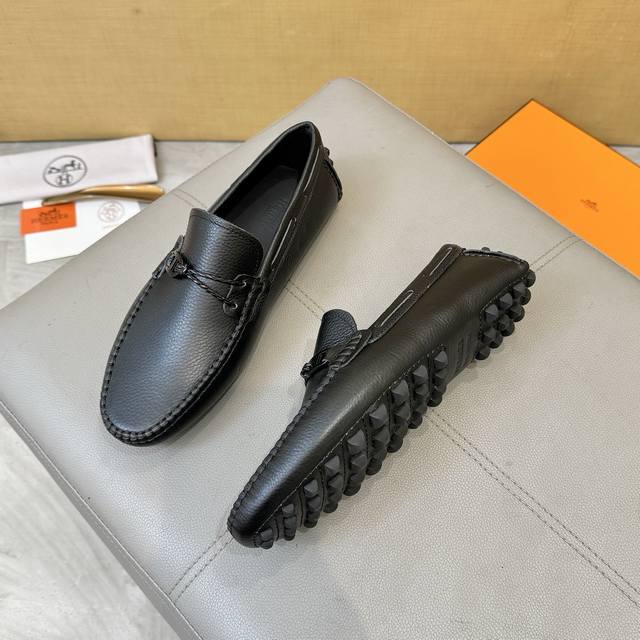 He*Mes 男士豆豆鞋 2025官网同步 市场顶级版本 进口荔枝纹黑色牛里 原版包装 。尺码 38-45 DDD