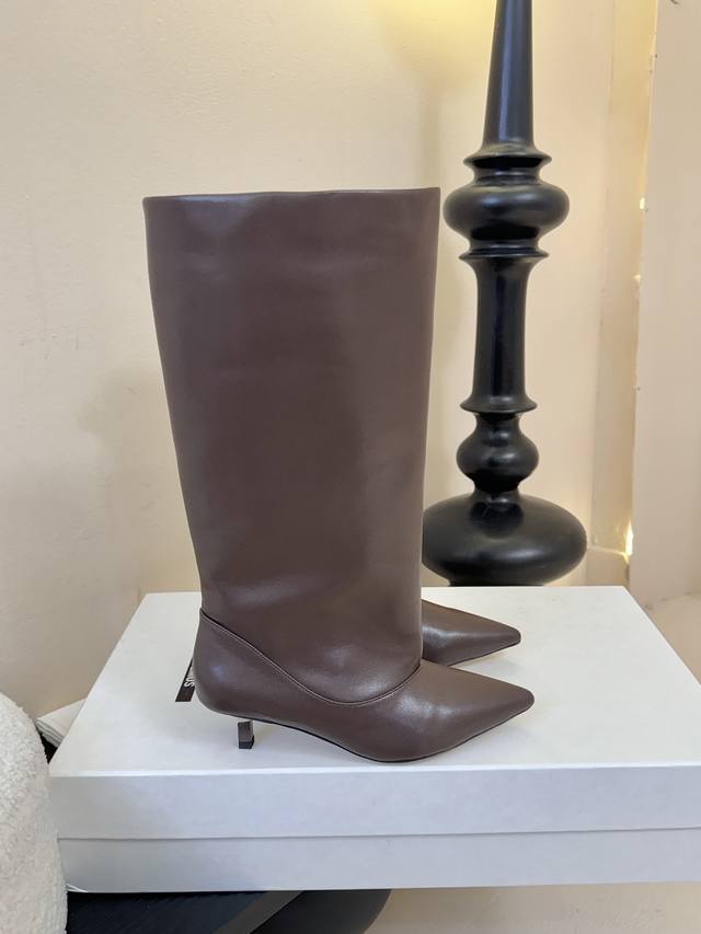 Jacquemus 新品靴 黑色长靴界的“时髦尖子生” 利落尖头+小猫跟 大靴筒太鲨我 气场直接拉满 走哪都是焦点~ 鞋面:进口麂皮.牛皮 垫脚:进口小羊皮 大底:进口真皮大底 跟高:4.5Cm Size:35-39 40.41定