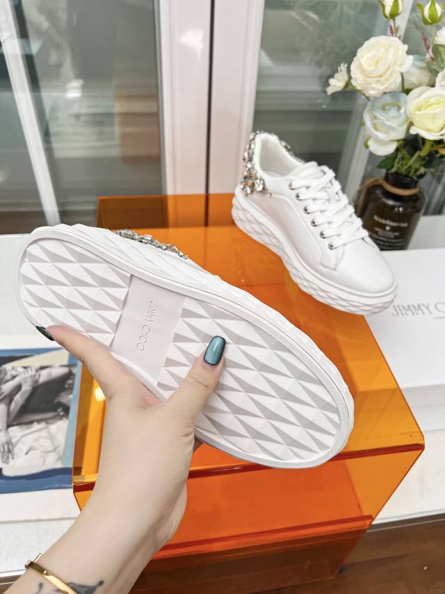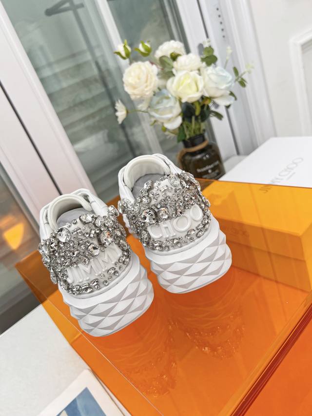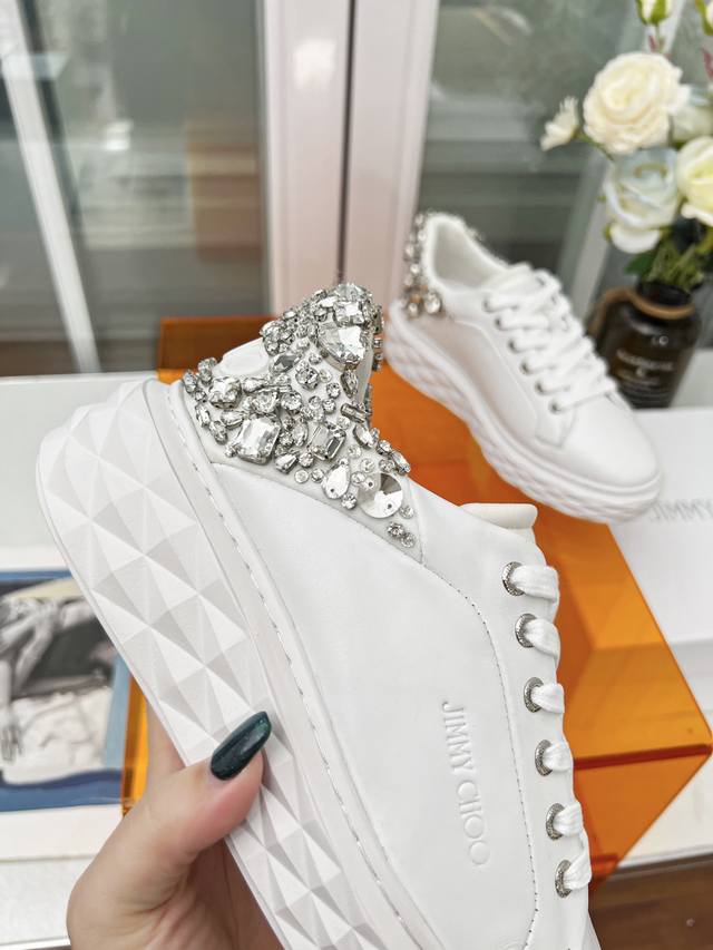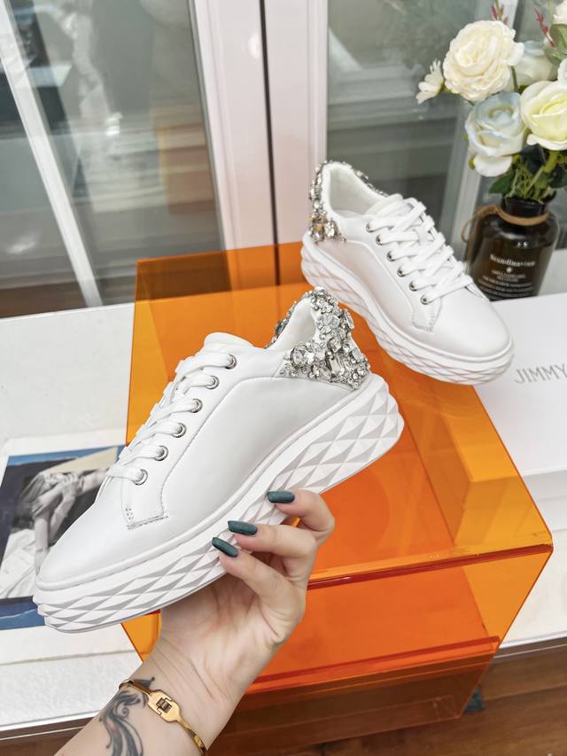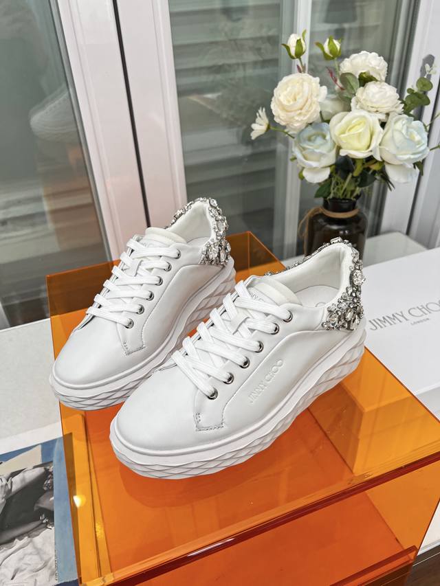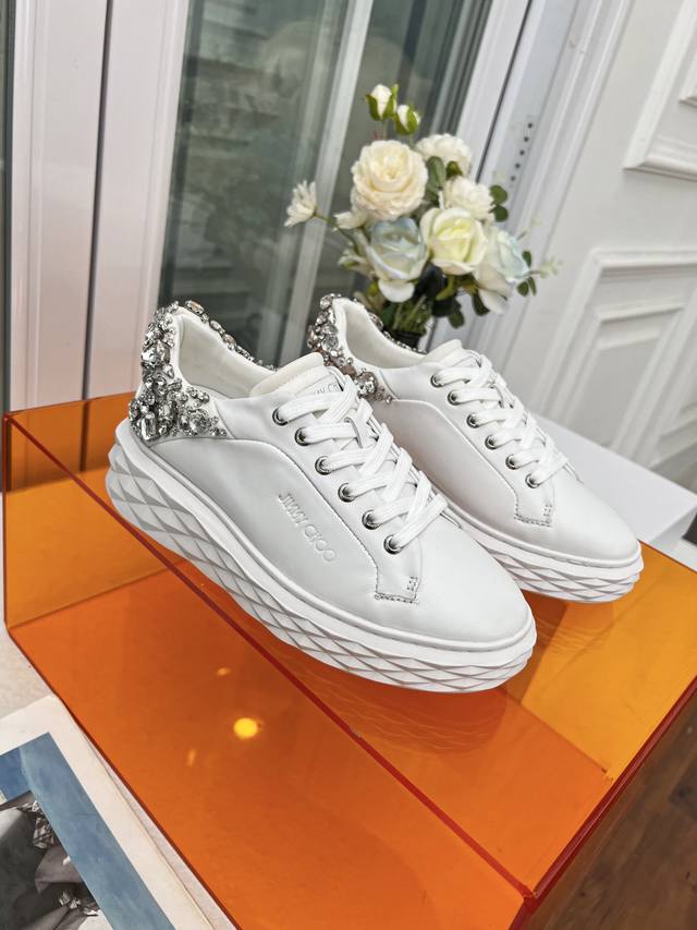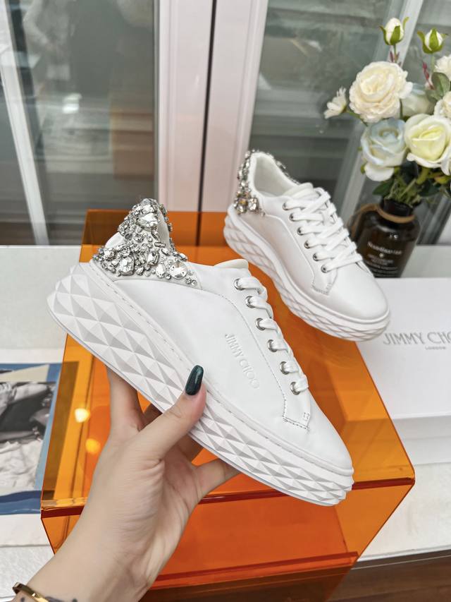 Jimmy Choo周仰杰 缝钻 女款Size: 34-41 正码34.41定做不退换 Ddd Jimmy Choo周仰杰 2026春夏Jc新款Diamond 运动鞋系列上新鞋面采用原版进口牛皮拼接鞋底采用品牌元素防钻石多面切割塑形立体感十足鞋底渐薄厚增高设计让视觉没有丝毫压迫感上脚更舒适一款时尚、舒适、百搭、奢华于一体的Diamond运动鞋值得拥有♀ Ddd 面料:原版进口头层牛皮格丽特 Ddd 内里:原版定制透气莱卡 Ddd 垫脚:羊皮 Ddd 大底:原版玻璃胶组合底。 DDD