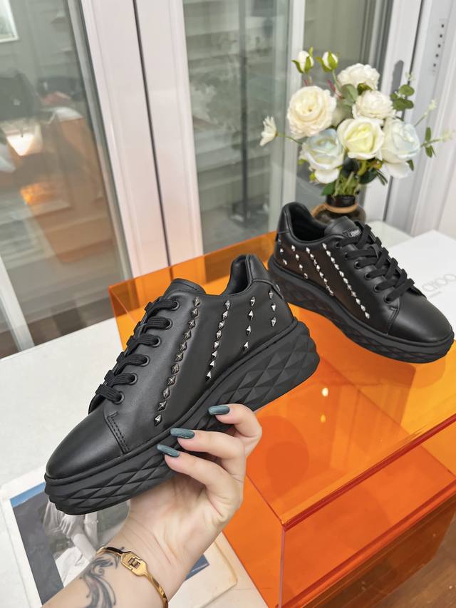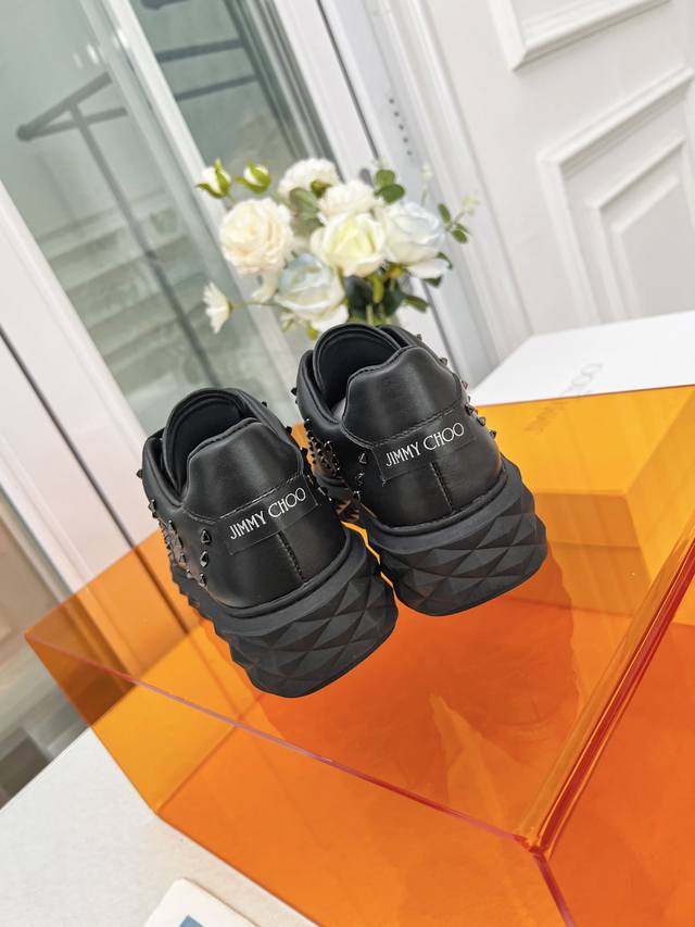 Jimmy Choo周仰杰 铆钉 女款Size: 34-41 正码34.41定做不退换 Ddd Jimmy Choo周仰杰 2026春夏Jc新款Diamond 运动鞋系列上新鞋面采用原版进口牛皮拼接鞋底采用品牌元素防钻石多面切割塑形立体感十足鞋底渐薄厚增高设计让视觉没有丝毫压迫感上脚更舒适一款时尚、舒适、百搭、奢华于一体的Diamond运动鞋值得拥有♀ Ddd 面料:原版进口头层牛皮格丽特 Ddd 内里:原版定制透气莱卡 Ddd 垫脚:羊皮 Ddd 大底:原版玻璃胶组合底。 DDD