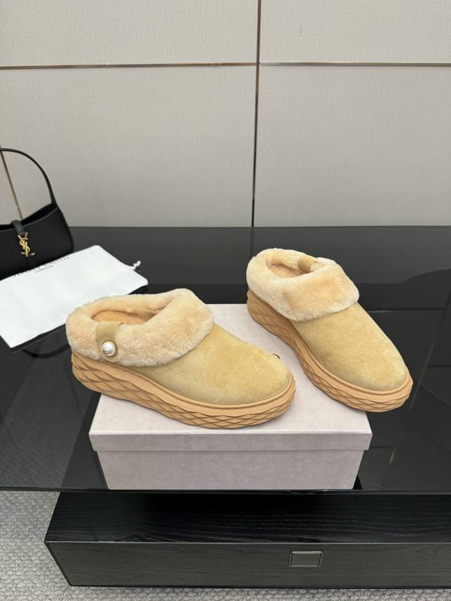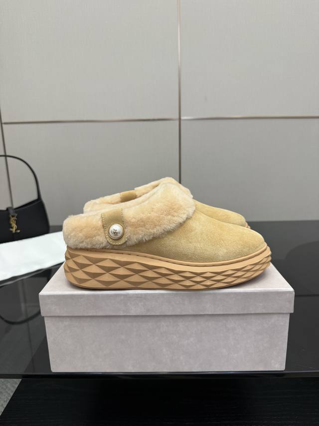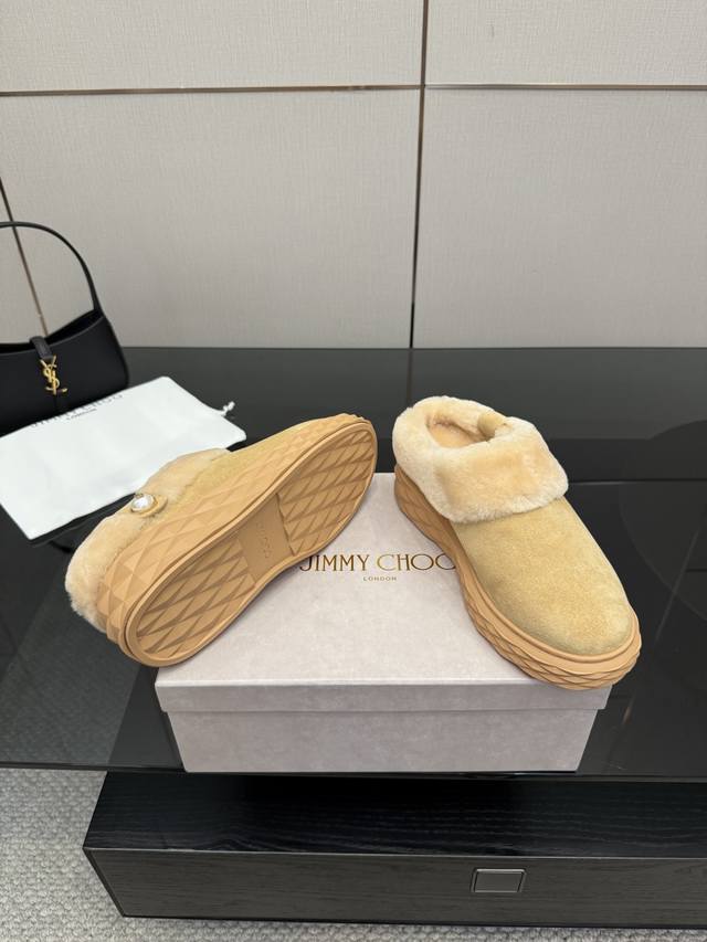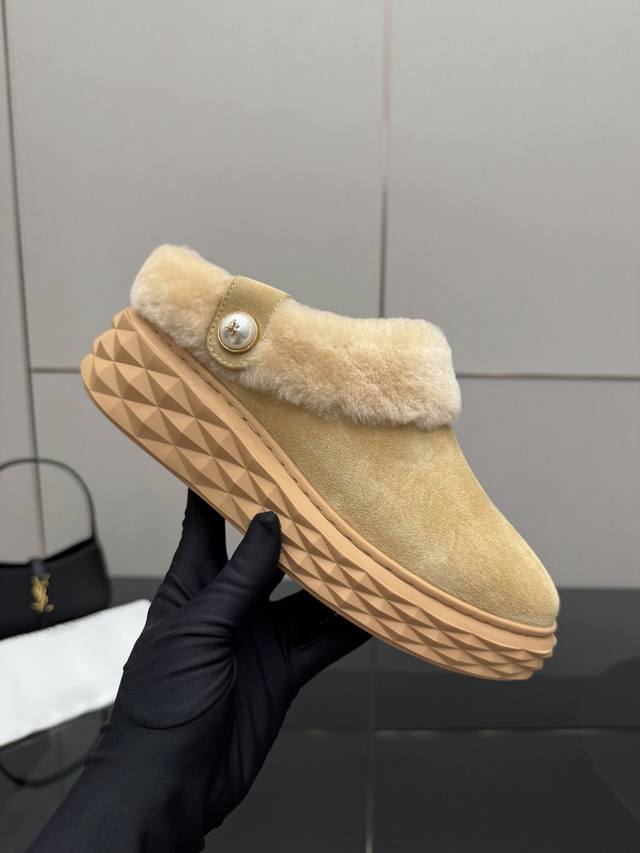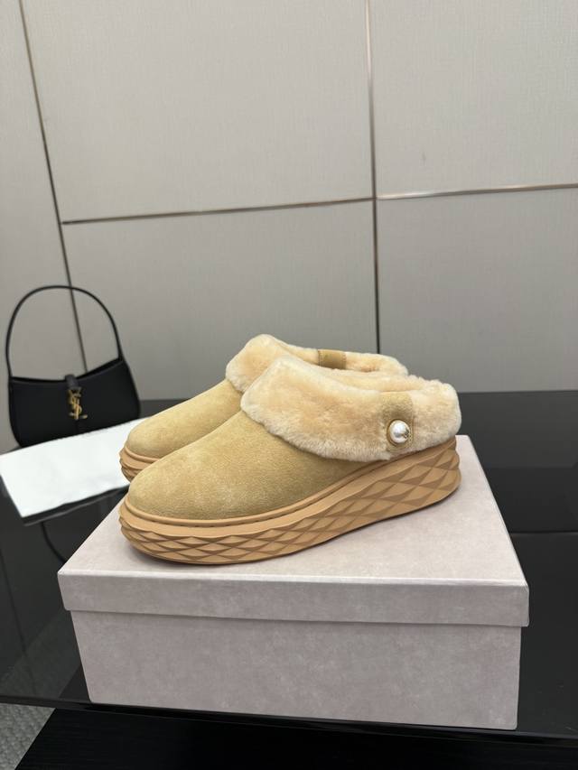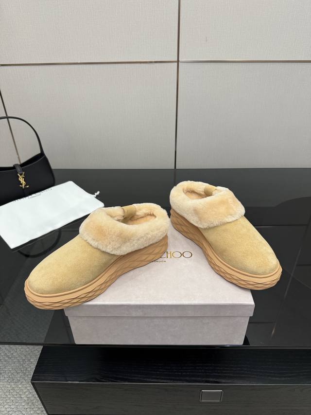 / Jimmy Choo 独家发售,拖鞋羊毛里,采用最新工艺设计,立体感强多种工艺融合一起,颠覆时尚,超级有型!搭配超美。原版一比一,真羊毛保暖雪地靴 百搭又潮流,