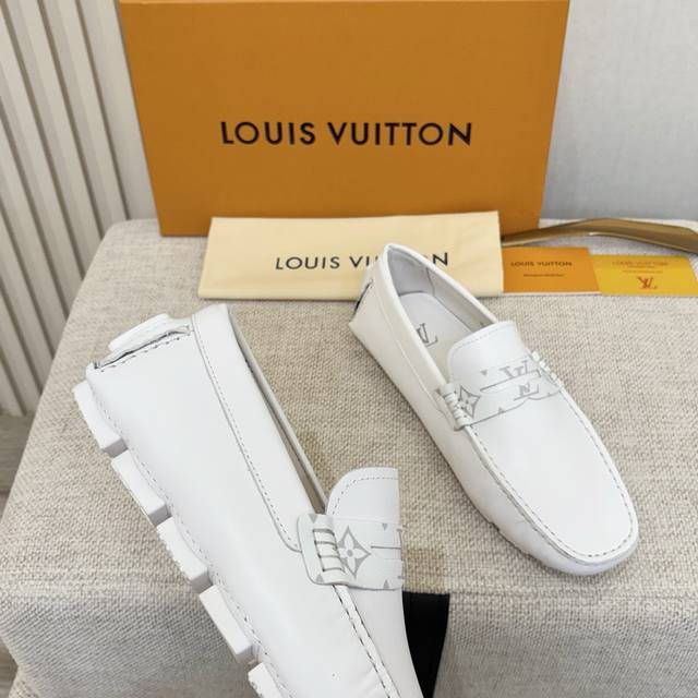 L 家 男士豆豆鞋 2025官网同步 市场顶级版本 进口头层小牛皮白色牛里 原版包装 。尺码38-45